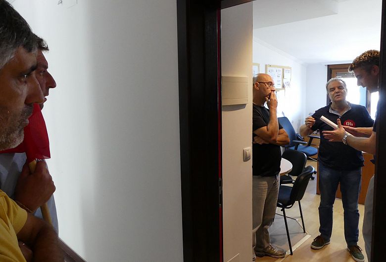 Mentres, o grupo máis numeroso permanecía concetrado ás portas do edificio, onde se despregaron varias faixas contra a explotación laboral e e fraude á Facenda e á Seguridade Social que están a cometer as compañías encargadas dos traballos de ampliación da ponte. Alí permaneceron ate pouco despois das 12.00 horas, cando rematou a xuntanza que mantiveron o xerente e o responsábel de saúde laboral da UTE cos representantes sindicais que accederon ao interior das oficinas. Tanto a entrada como a permanencia nas instalacións transcorreu sen ningún tipo de incidente.