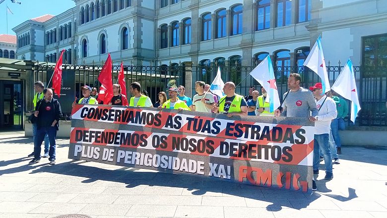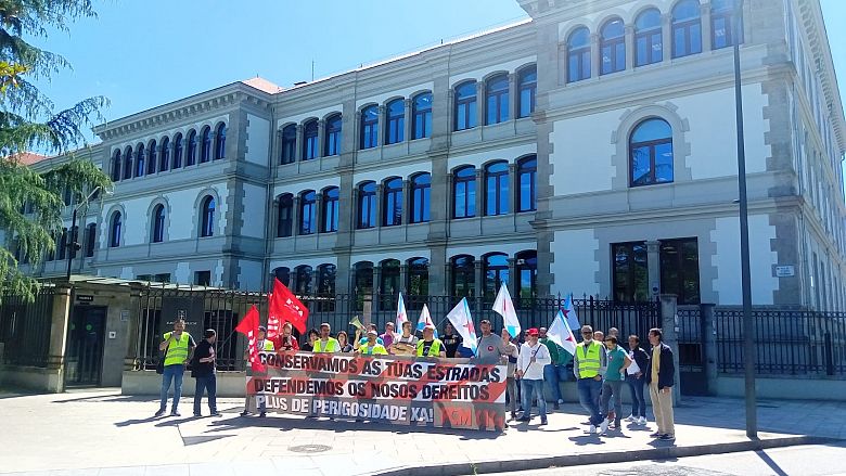 Delegados da CIG nas empresas de mantemento e conservación das vías concentráronse este martes diante do edificio da Xunta en San Caetano para esixir das concesionarias e das administracións públicas que garantan unhas condicións laborais dignas no sector e, nomeadamente, para que se lle recoñeza a aplicación do plus de perigosidade estabelecido nos convenios de construción, tendo en conta o risco inevitábel do seu traballo.