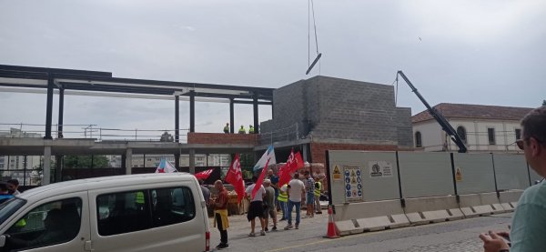 Delegados e delegadas da CIG-Construción ocupan e paran durante unha hora as obras da intermodal de Lugo