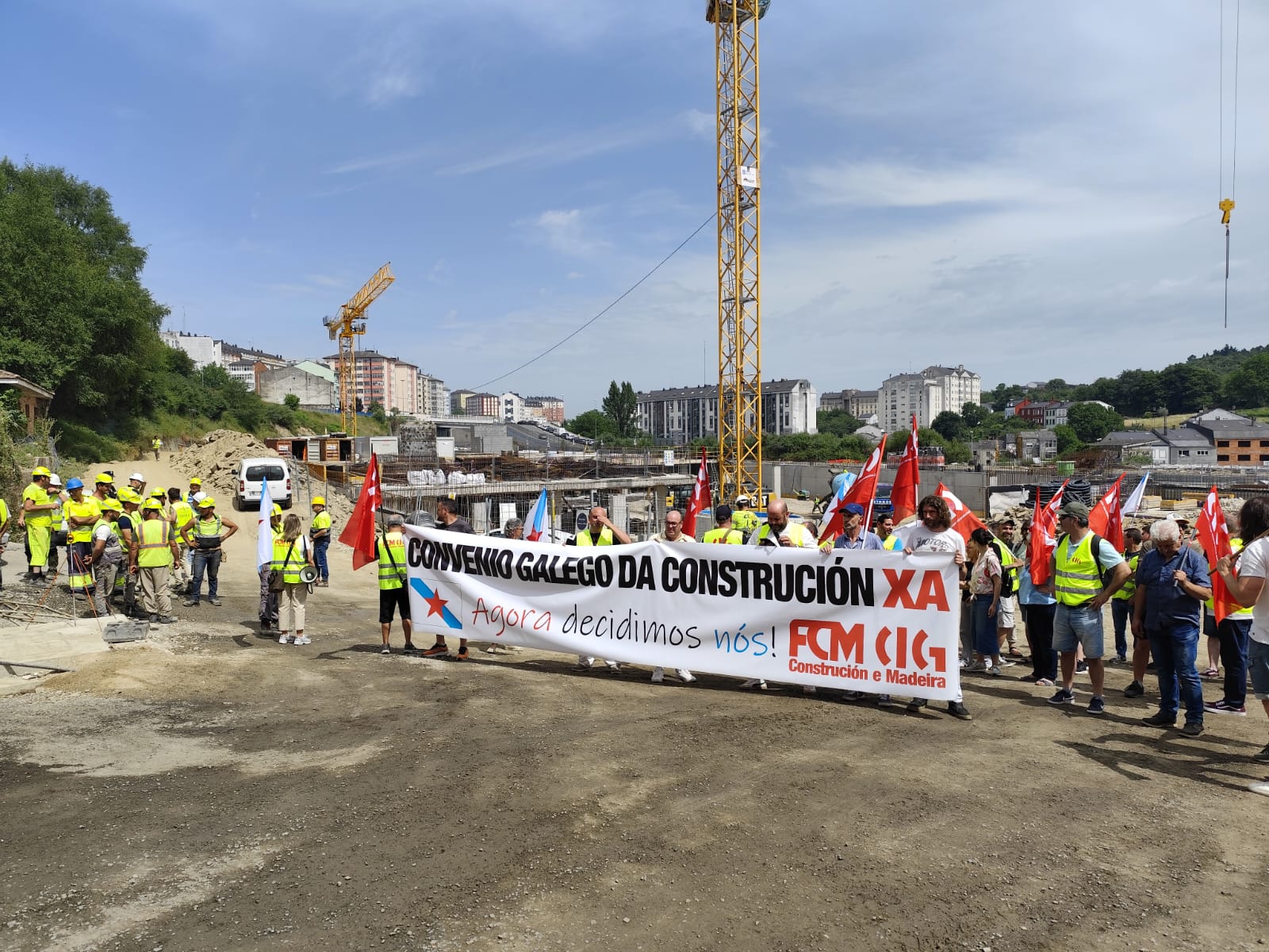 Delegados e delegadas da CIG-Construción e Madeira (FCM-CIG) ocuparon e paralizaron durante unha hora este xoves as obras públicas da estación intermodal de Lugo para reclamar a negociación dun convenio galego da construción e exixir da patronal que atenda as demandas sociais a este respecto.