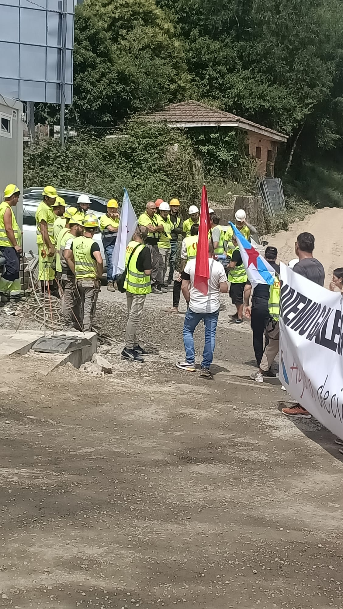 Durante o acto reivindicativo paráronse as dúas obras (adxudicadas a COPASA e San José) e aproveitouse para realizar unha asemblea cos traballadores e traballadoras para explicarlles os motivos da protesta e a necesidade de contar cun convenio galego que dignifique as condicións salariais e laborais “e que non nolas impoñan dende Madrid”. Tamén se abordaron as condicións de traballo que ten o persoal nestas obras e se responderon as dúbidas en materia laboral que formularon algúns dos operarios.