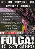 Anúnciase a desconvocatoria da xornada de folga prevista para mañá venres, día 15 de setembro, ao se chegar a un acordo coa patronal do sector de Eventos. O convenio, que previsiblemente será asinado a semana que vén, mellora as condicións salariais e laborais.