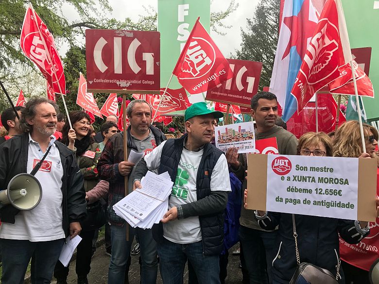 Hoxe concentráronse ante a Consellería de Educación e entregaron por rexistro 5.620 sinaturas recollidas entre o persoal docente para esixir unha negociación sobre as súas condicións laborais. Ademais fixeron entrega dun escrito solicitándolle unha reunión ao conselleiro de Educación coa finalidade de desatascar o inmobilismo do seu departamento e de buscar solucións para o sector.