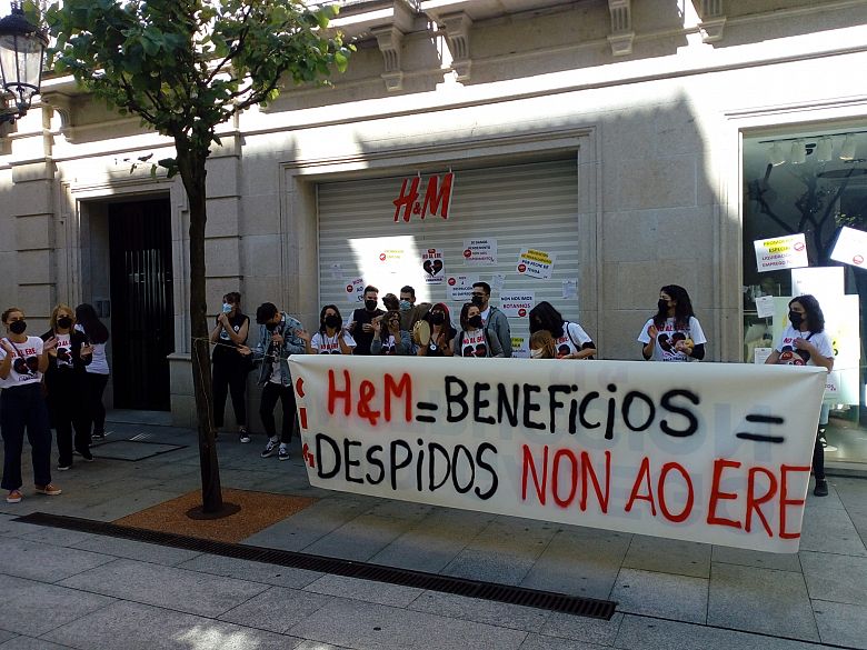 O persoal de H&M foi esta xornada á folga para rexeitar o ERE presentado pola transacional sueca do sector téxtil. No caso galego, unicamente dúas das oito tendas (Pontevedra e Santiago) quedarán, polo momento, libres das consecuencias do ERE.