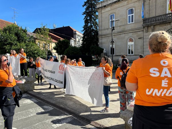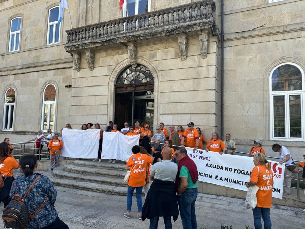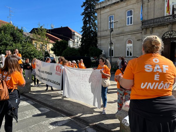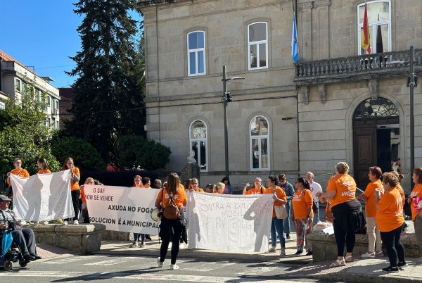 O persoal do Servizo de Axuda no Fogar (SAF) do Concello de Ponteareas comezou hoxe unha folga indefinida en reposta aos graves incumprimentos laborais da concesionaria. As traballadoras aproveitaron a xornada para desenvolver unha protesta ao mediodía tanto no exterior como no interior do consistorio, mobilizacións que manterán de luns a venres para reclamar a rescisión do contrato coa empresa Óbolo e que o servizo sexa asumido polo Concello.