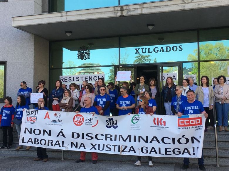 Tras 77 días de folga, as traballadoras e os traballadores de xustiza continúan coas mobilizacións diarias para visibilizar o conflito e levar as súas reivindicacións para rematar coas discriminacións salariais e laborais alí a onde sexa preciso. Este martes o persoal de Vigo fixo un sonoro recibimento ao presidente da Xunta, Alberto Núñez Feijoo, quen acudiu a un acto oficial nesta cidade; as traballadores e traballadoras de Lugo concentrábanse diante das dependencias xudiciais, mentres o comité de folga mantén a acampada en Compostela.