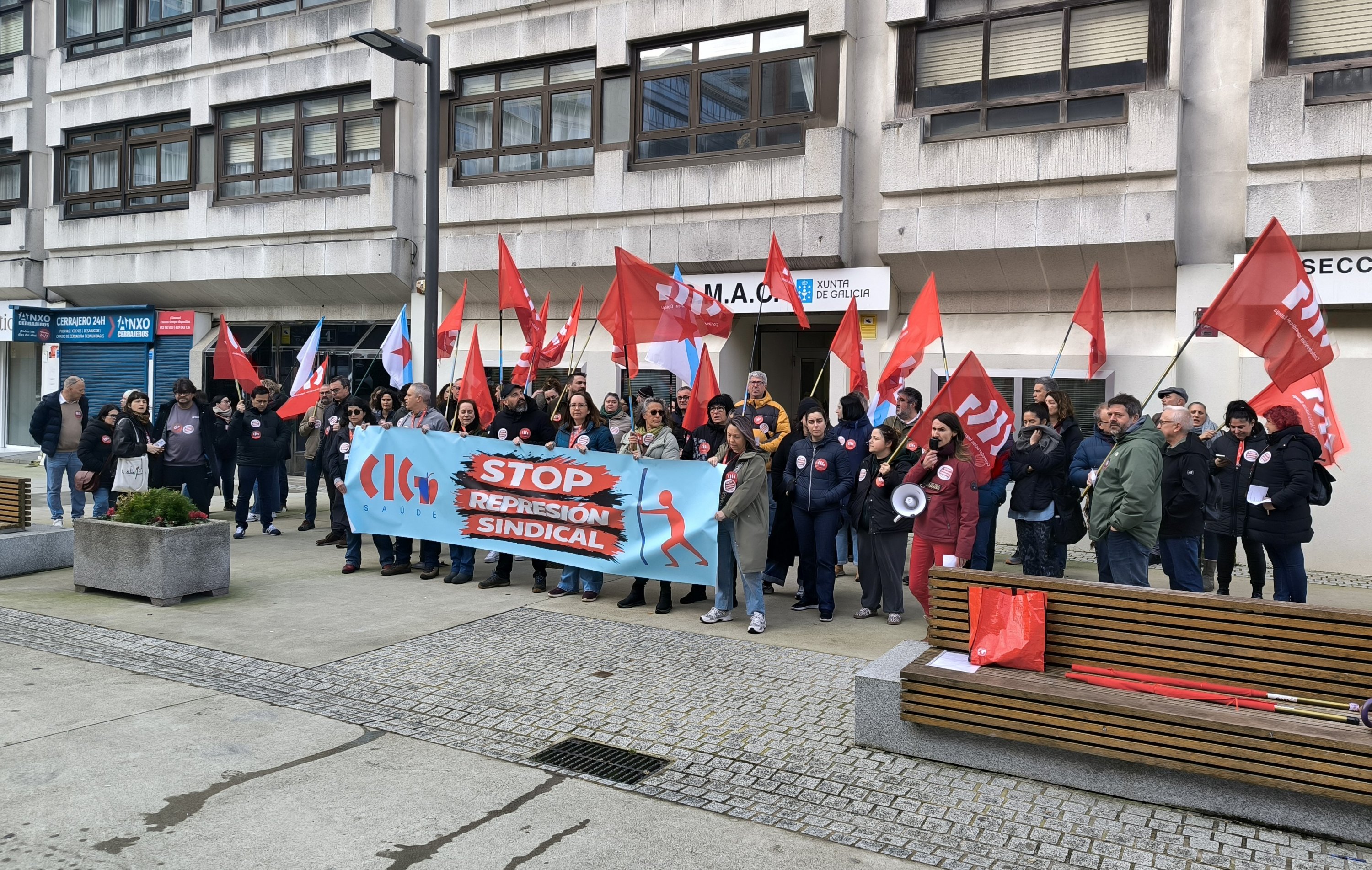 A CIG desenvolveu unha concentración este xoves diante do SMAC da Coruña contra a política de persecución e represión sindical exercida polo Hospital Quirón. A protesta realizouse coincidindo co acto de conciliación polas sancións impostas á presidenta e ao secretario do comité, a quen ademais a empresa despediu, mentres estaba de baixa, alegando motivos disciplinarios por supostos incumprimentos en materia de protección de datos.