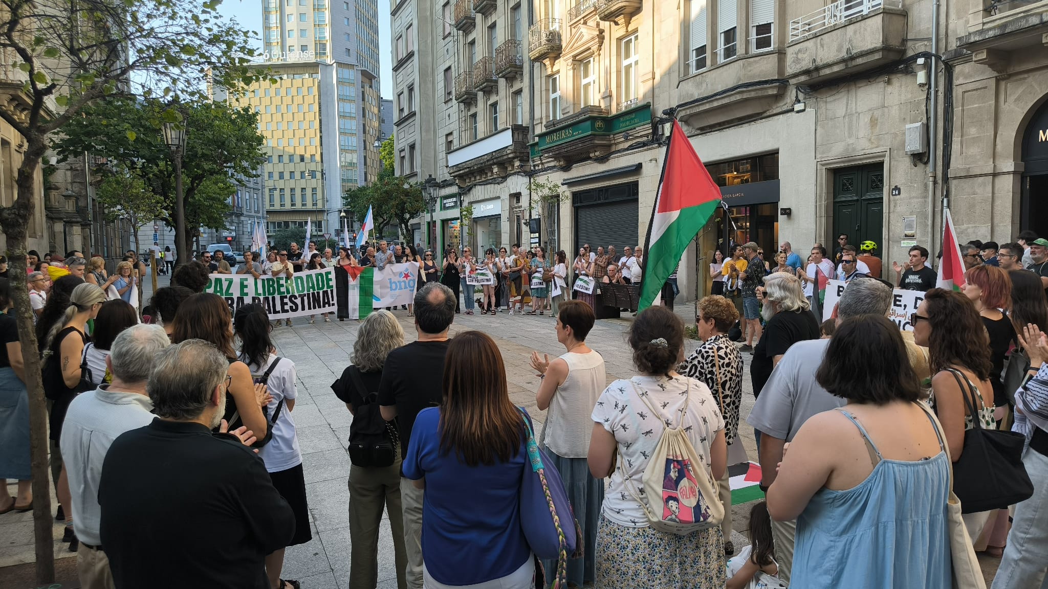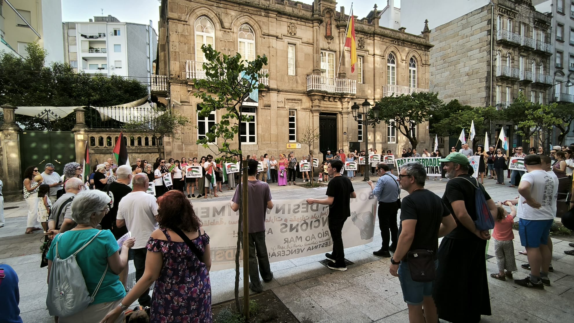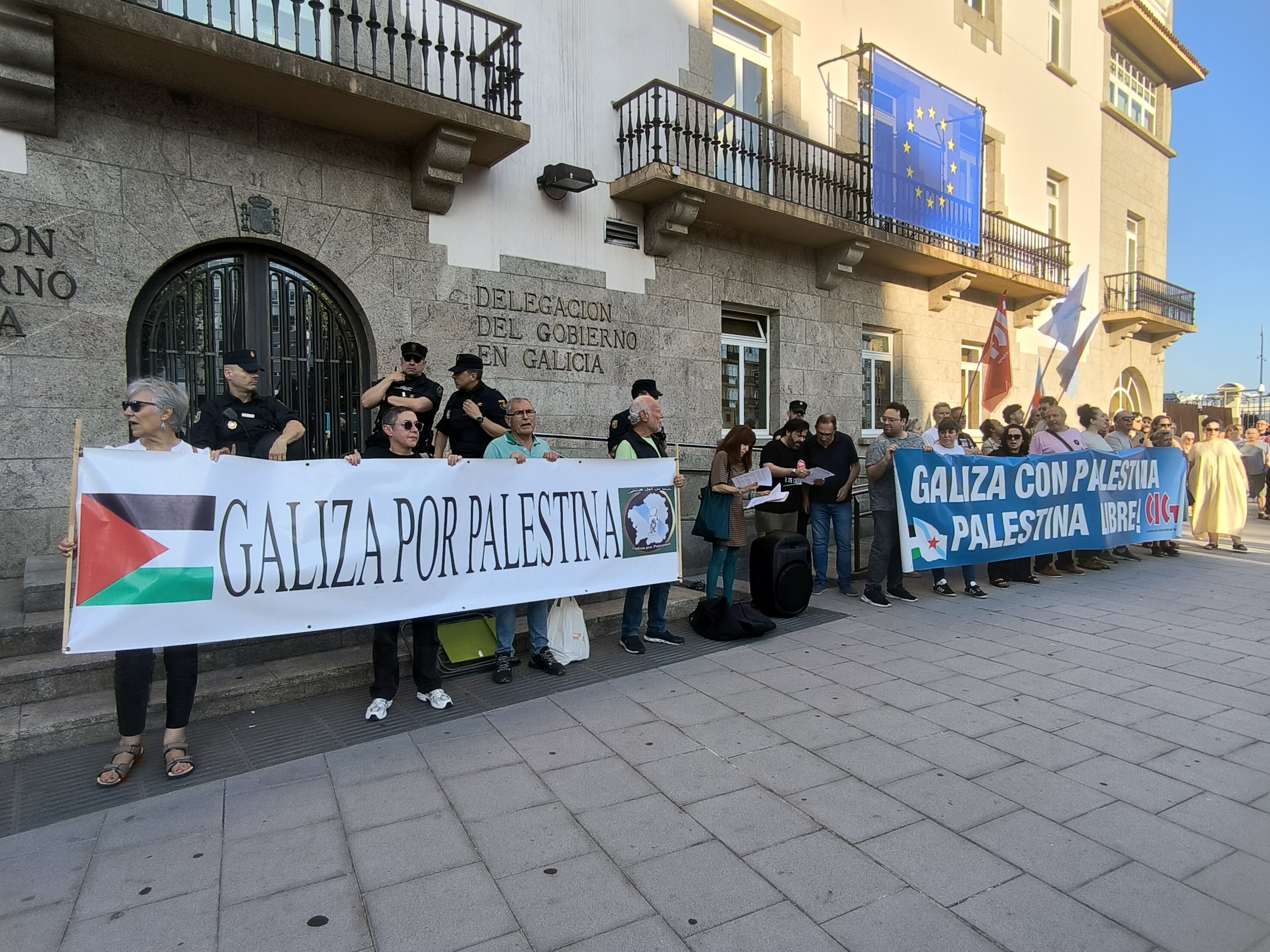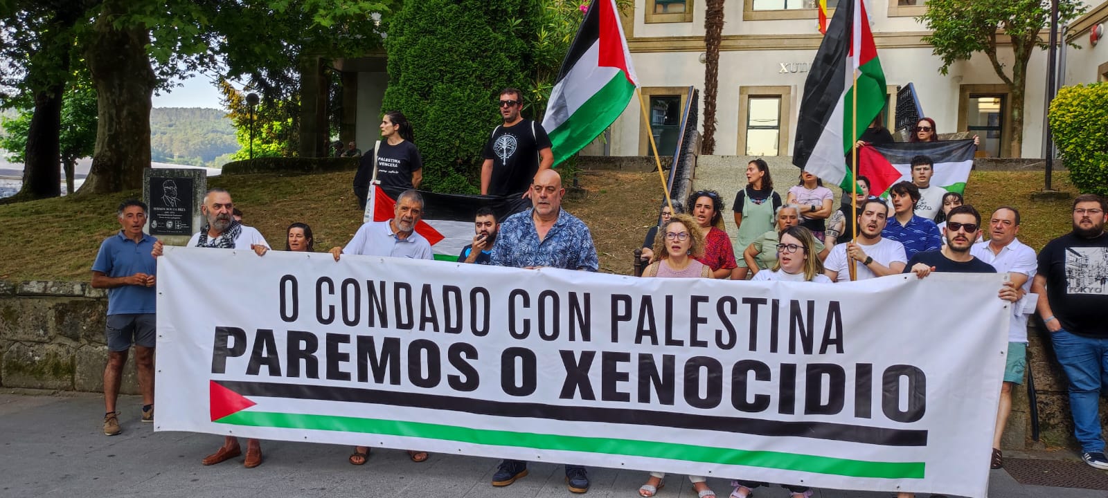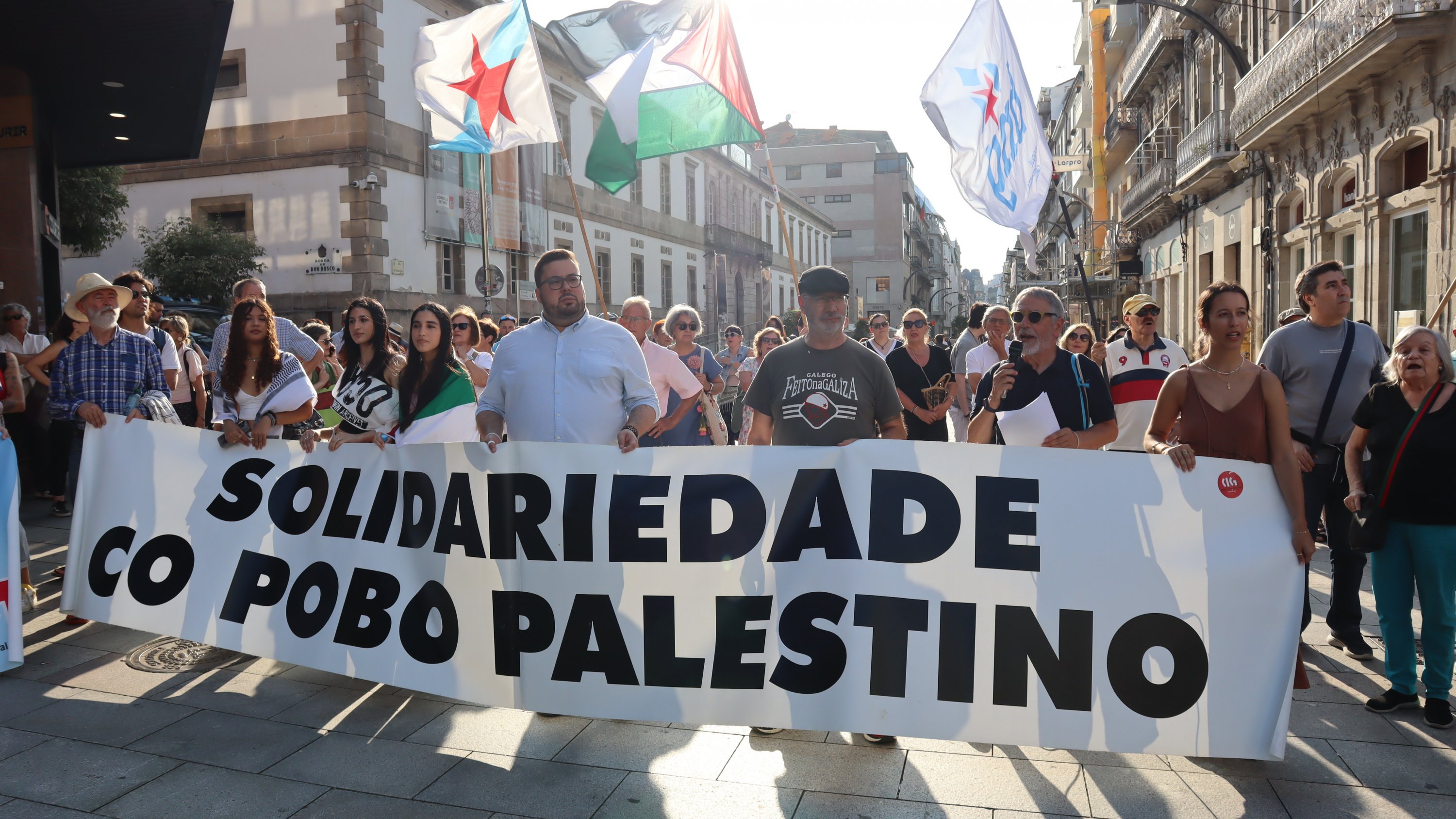 Hoxe, en 39 localidades, Galiza demostra máis unha vez a súa solidariedade firme e sen descanso coa Palestina e coa resistencia inesgotábel do seu pobo, primeiro contra as bombas e agora tamén contra a fame empregada como arma de guerra polo ocupante.