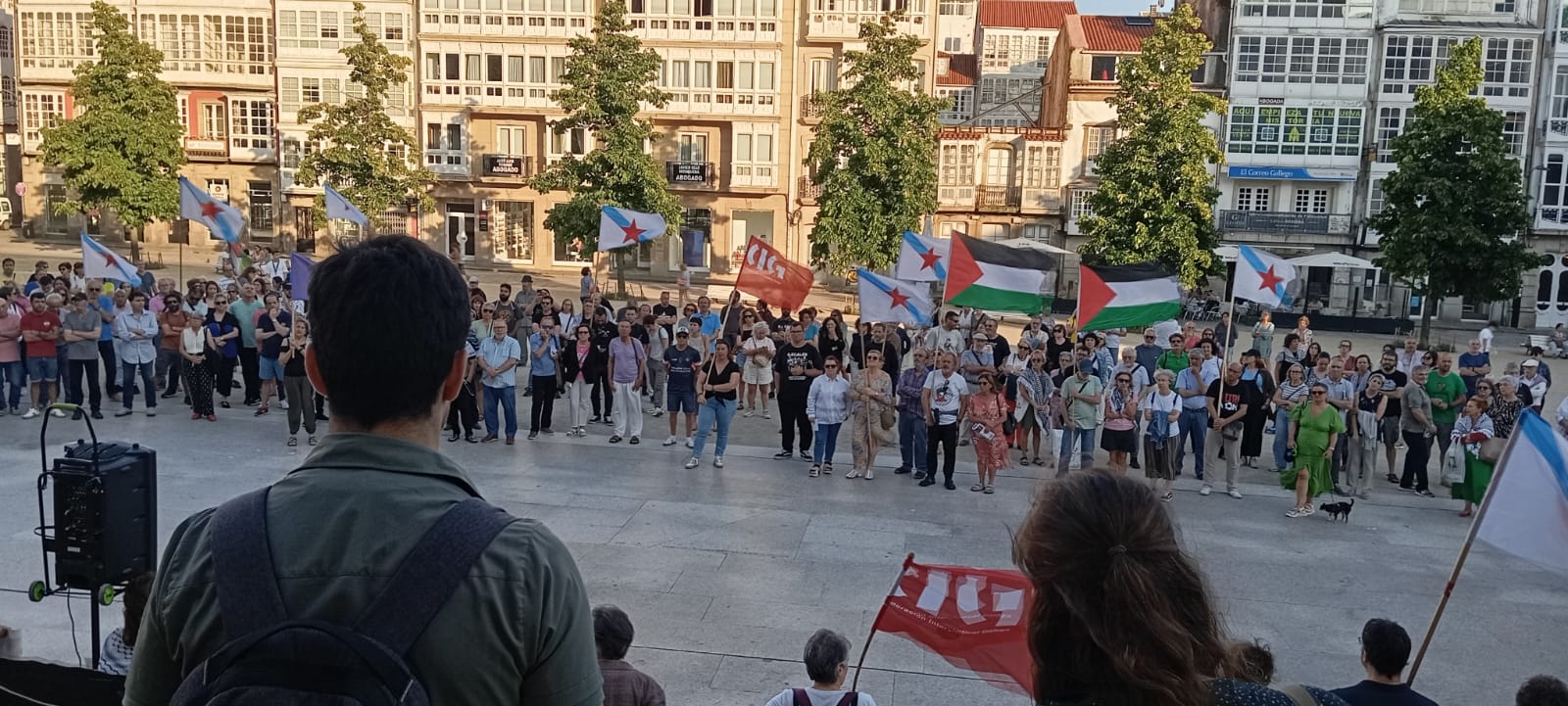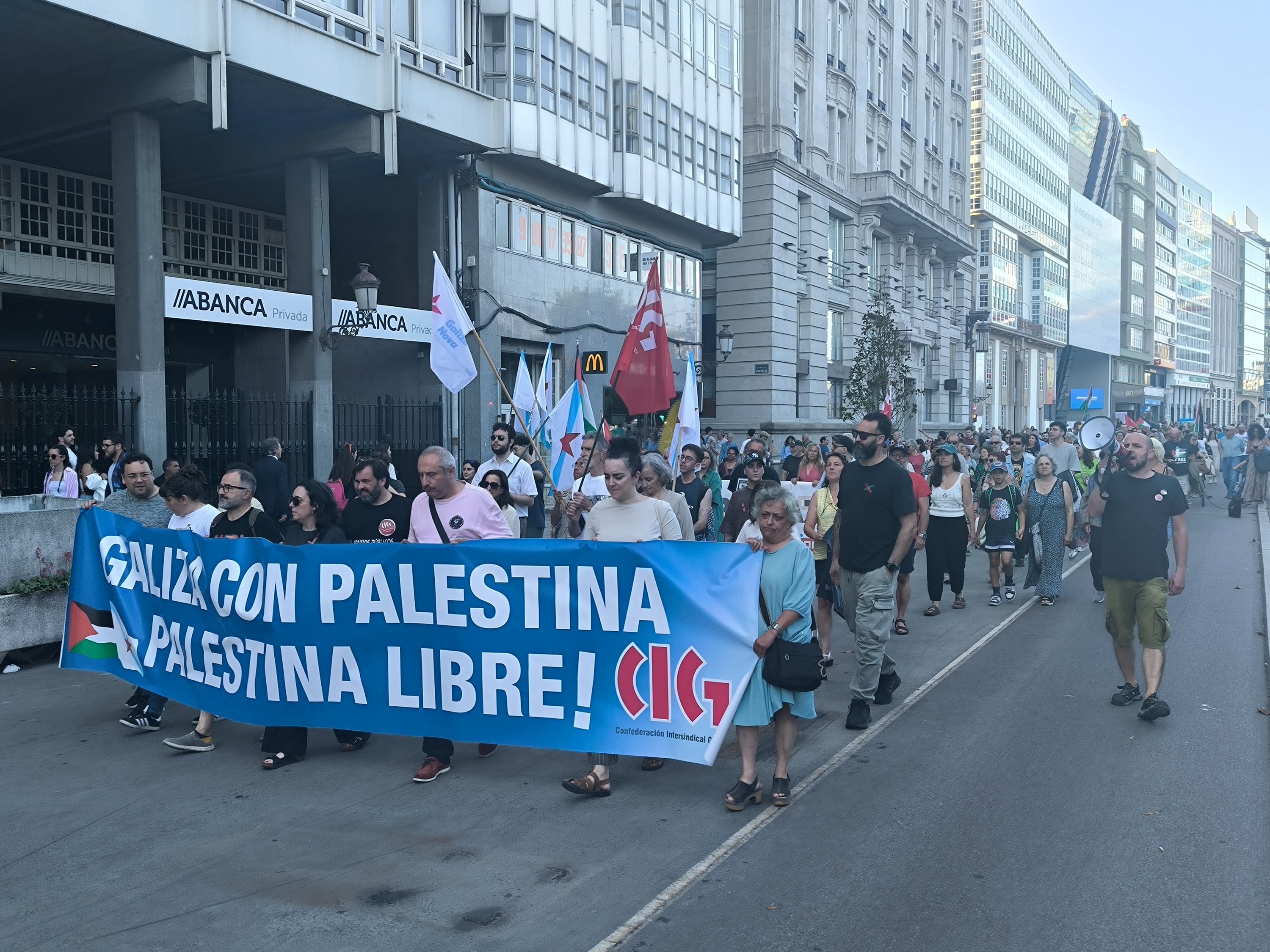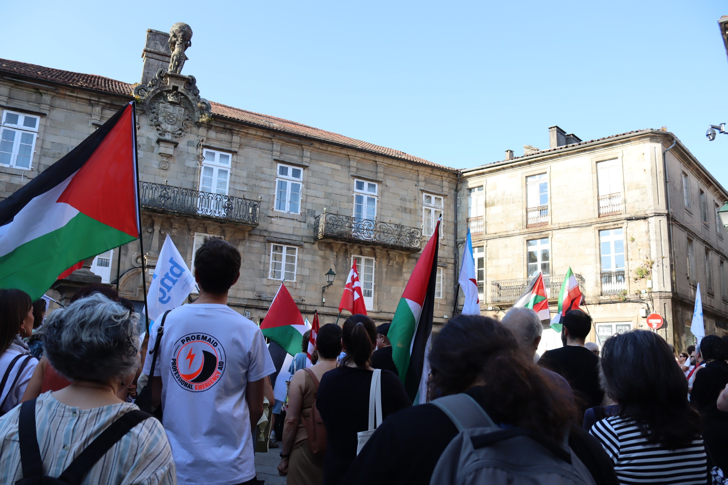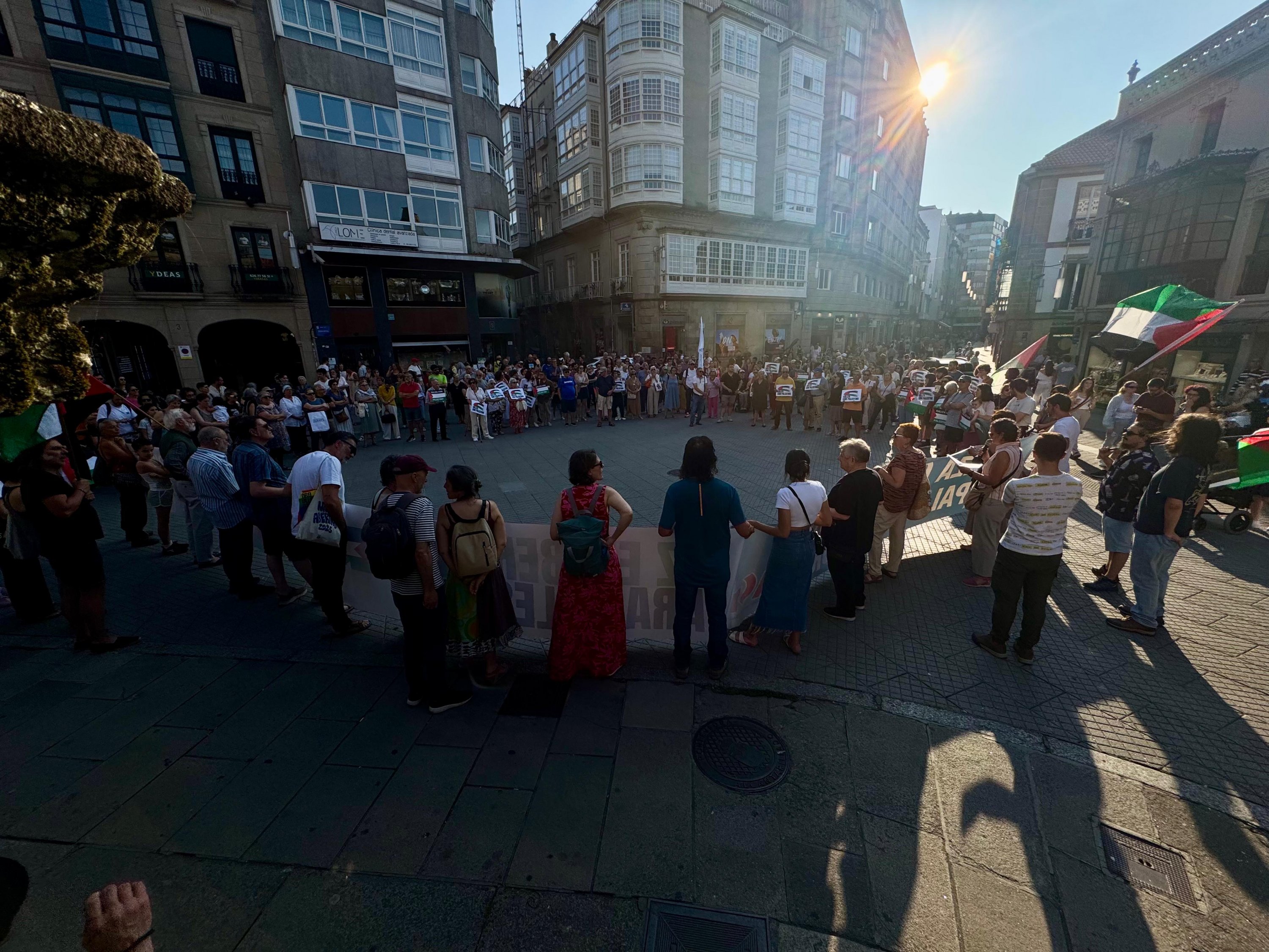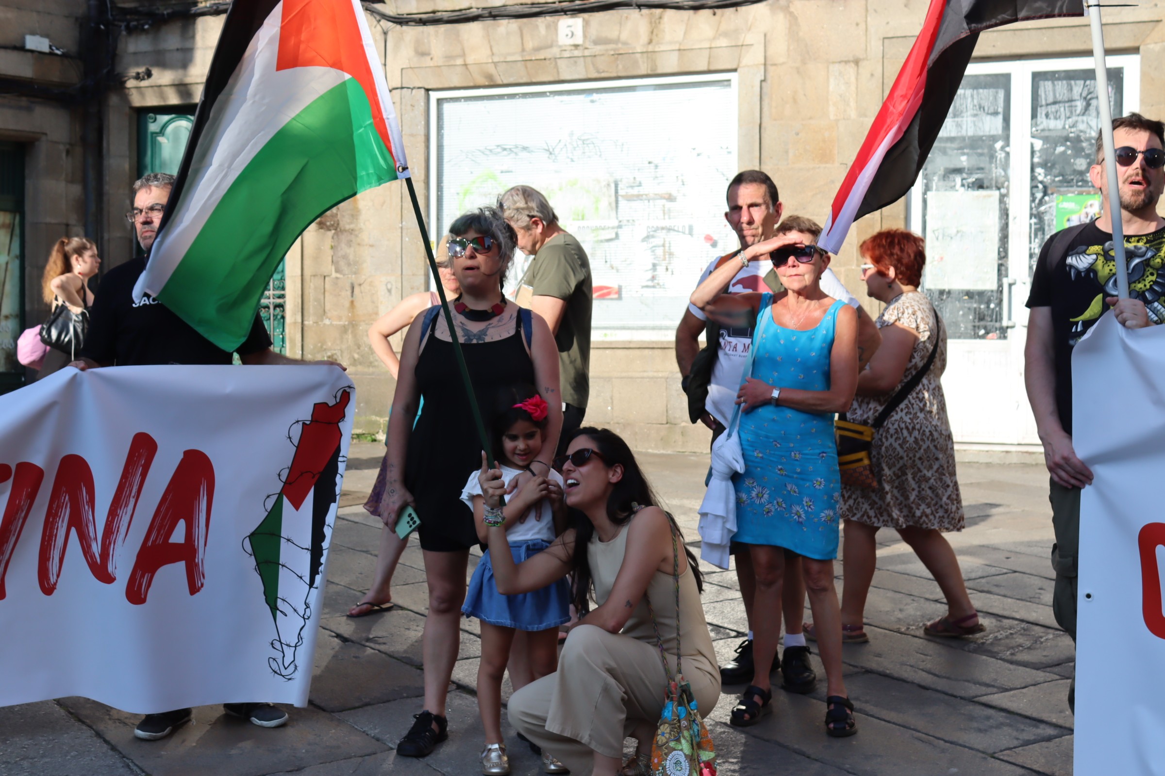Hoxe, en 39 localidades, Galiza demostra máis unha vez a súa solidariedade firme e sen descanso coa Palestina e coa resistencia inesgotábel do seu pobo, primeiro contra as bombas e agora tamén contra a fame empregada como arma de guerra polo ocupante.