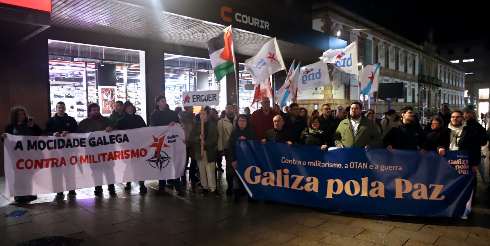 A plataforma Galiza pola Paz convocou hoxe mobilizacións nas principais cidades galegas para denunciar os avances do imperialismo e os plans de rearmamento da Unión Europea, que ameazan a paz mundial e teñen graves consecuencias para o pobo galego. A plataforma denuncia as agresións recentes dos Estados Unidos, a obsesión europea por unha hipotética guerra no leste e exixe a paralización inmediata do aumento do gasto militar.