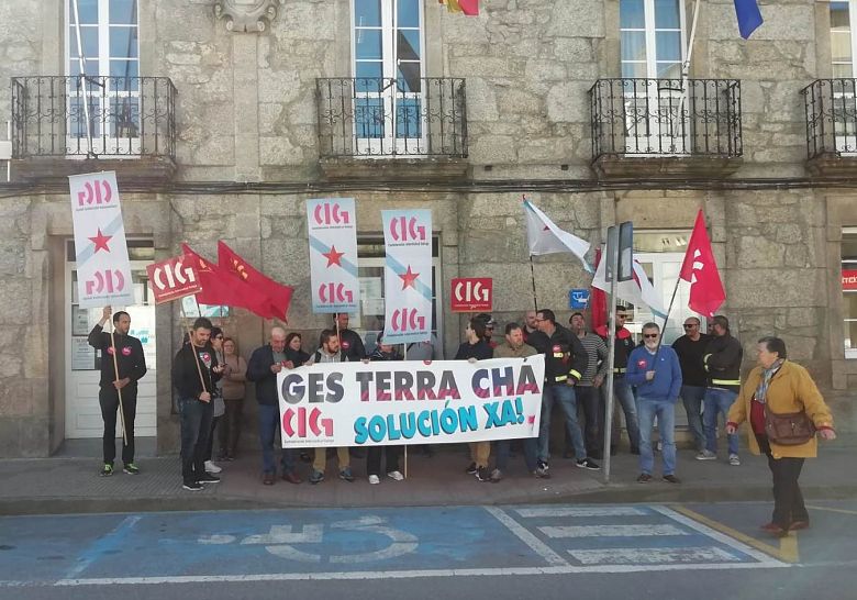 A CIG concentrouse este mércores diante do Concello de Guitiriz para esixir do Goberno local que suspenda de inmediato a execución do ERE temporal para os traballadores do Grupo Supramunicipal de Emerxencias (GES), por ser ilegal e manifestamente nulo, tal e como así recoñece o Servizo Público de Emprego. Pero isto provoca, ademais, que o SEPE lle denegue ao persoal afectado o dereito á cobrar a prestación por desemprego, deixándoos na máis absoluta precariedade e indefensión.