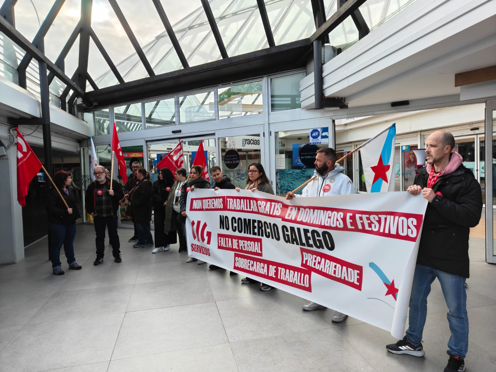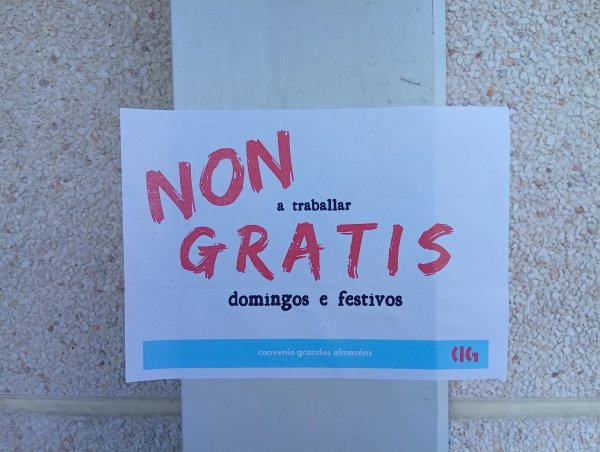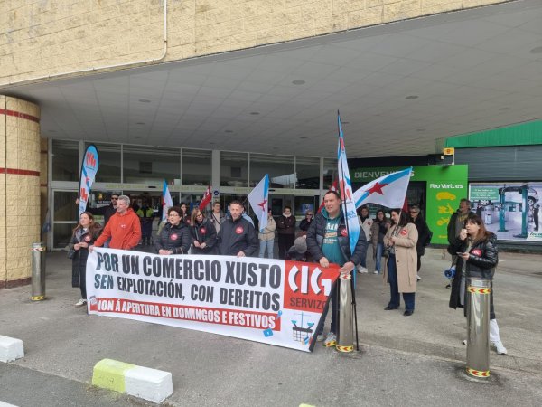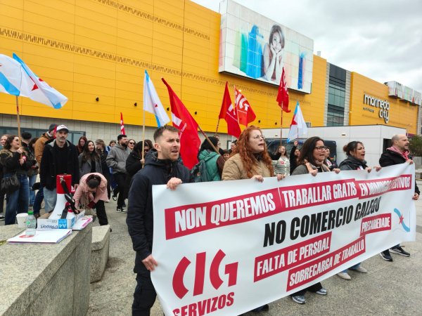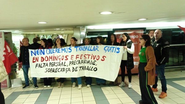 O persoal dos grandes almacéns galegos secunda este xoves, día festivo de apertura, a primeira xornada de folga de 24 horas convocada neste sector, contra a precariedade, a falta de persoal e a sobrecarga de traballo e en defensa de condicións laborais dignas e salarios xustos.