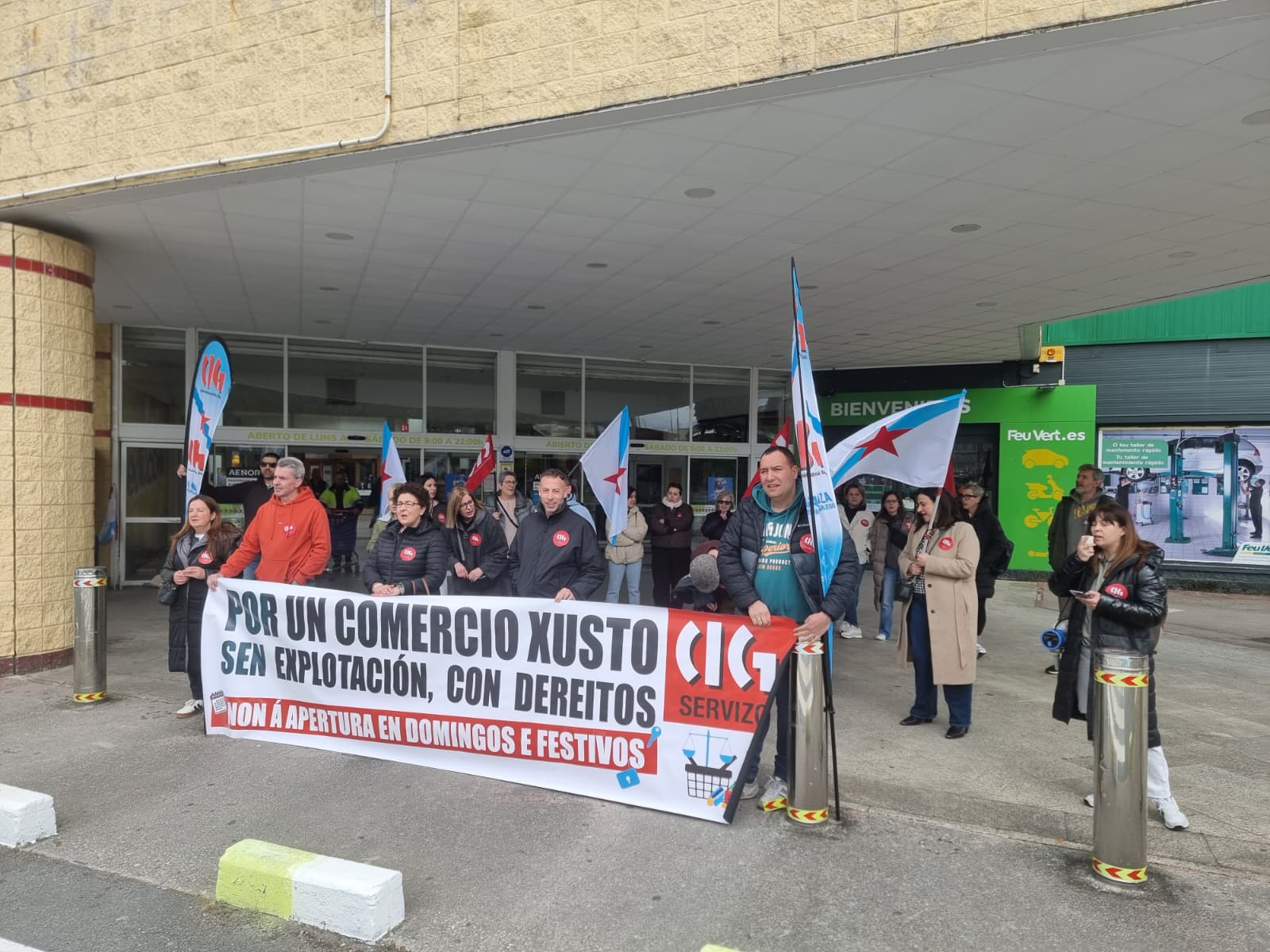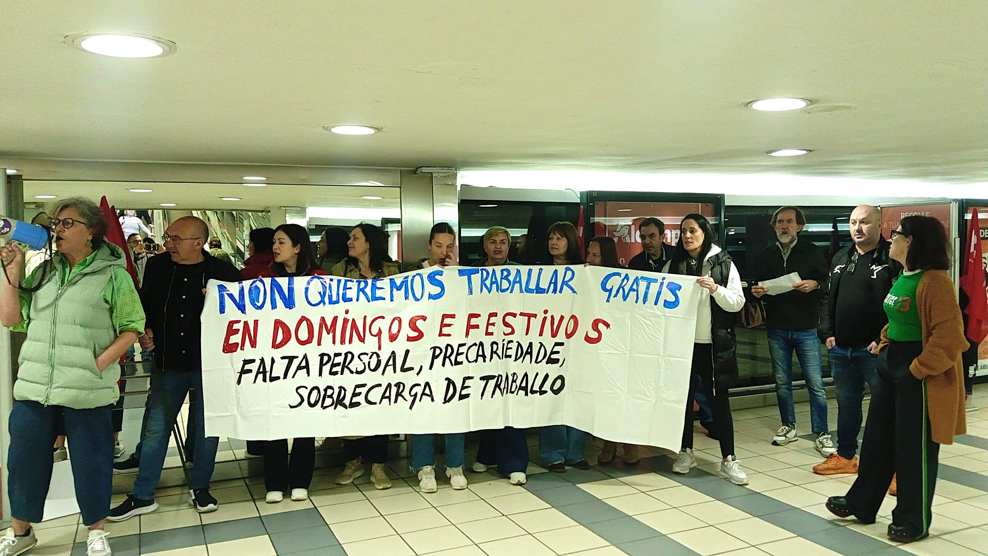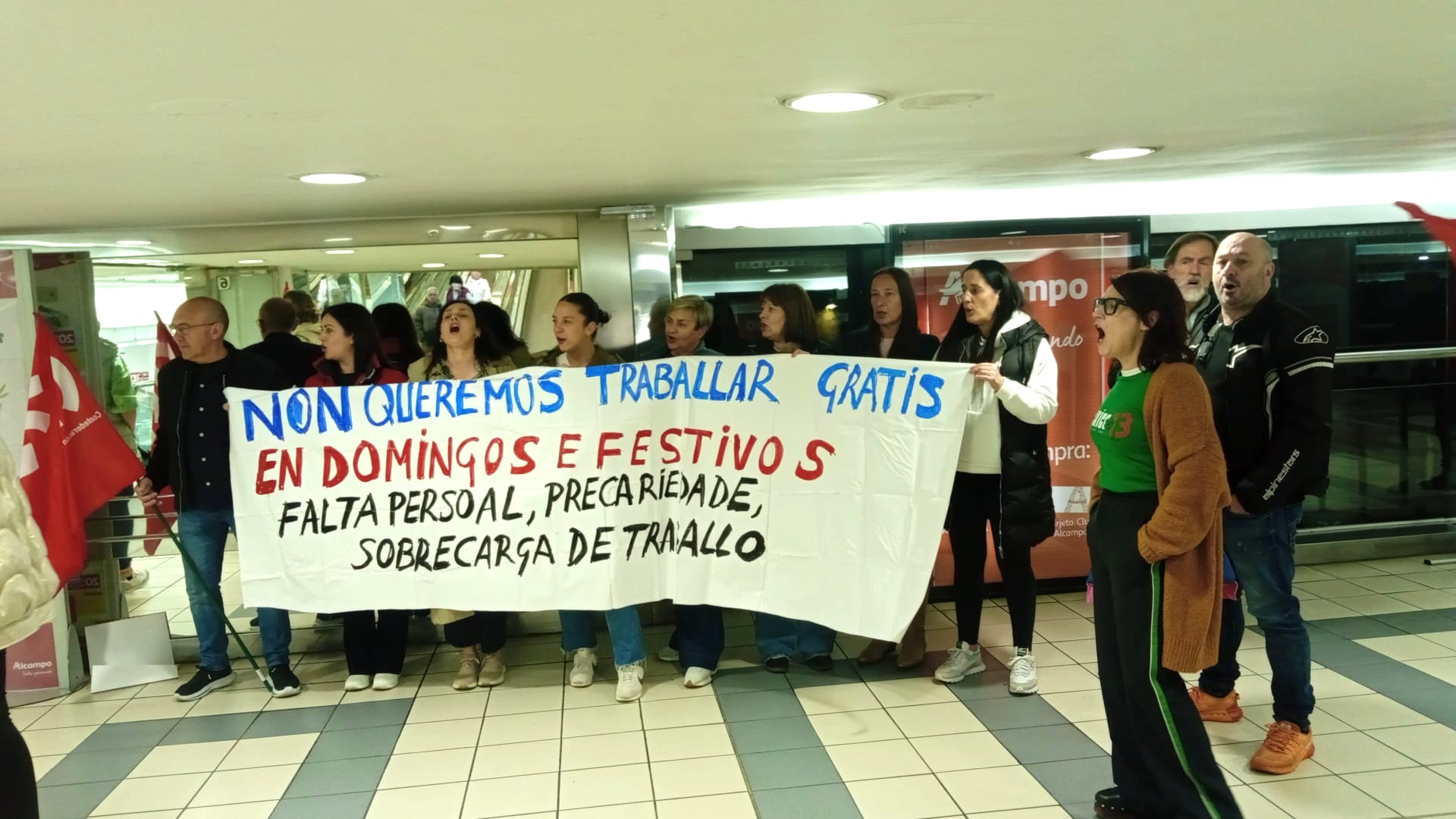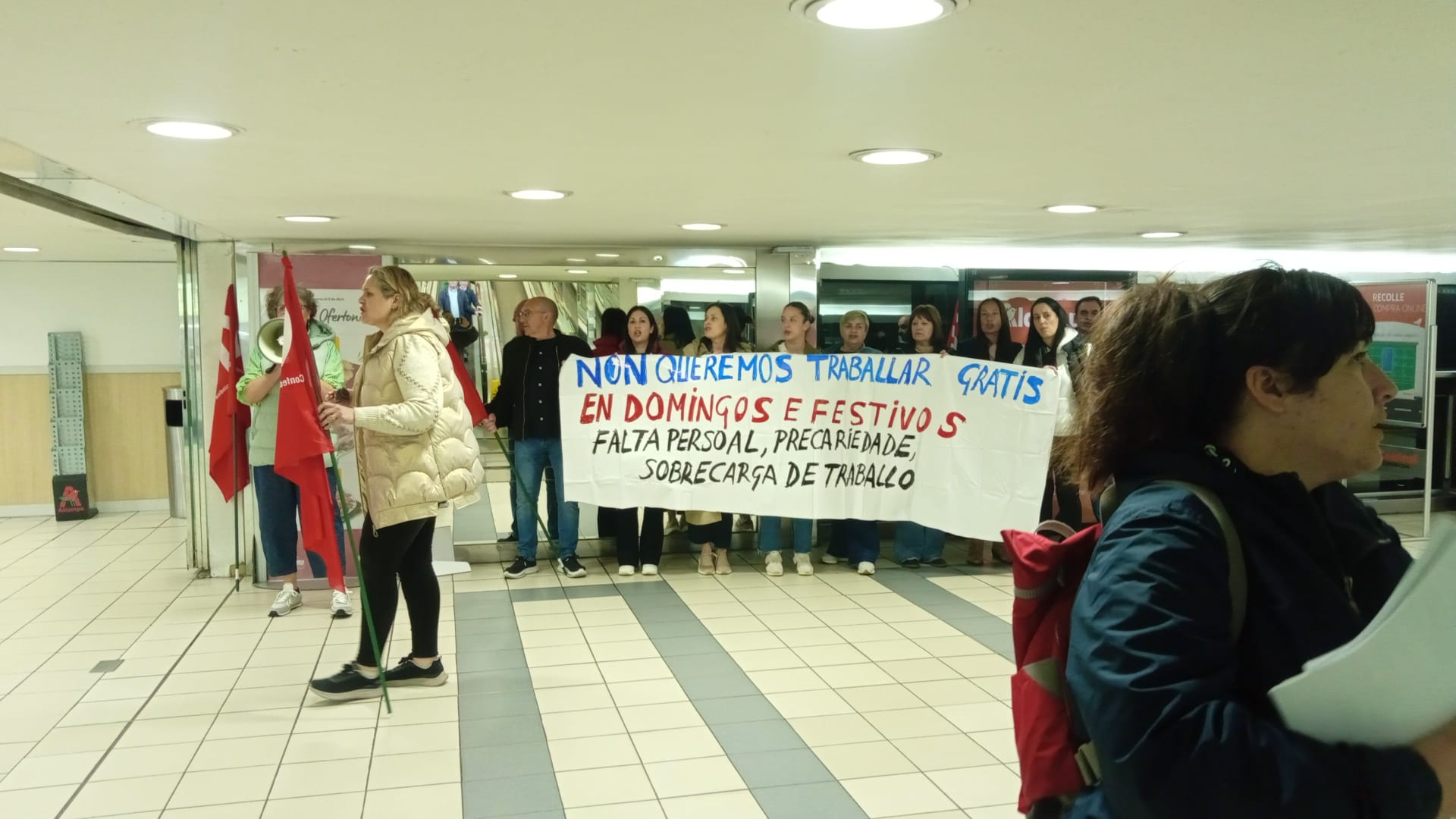 Trátase ademais dun sector altamente feminizado e cunha elevada porcentaxe de contratos a tempo parcial, no que resulta moi difícil conciliar a vida laboral e familiar. No que as compañías impoñen o traballo en domingos e festivos autorizados pola Xunta de Galiza, moitas veces sen compensación e mesmo incumprindo os descansos establecidos pola lei. “Mentres tanto, os salarios apenas superan o SMI e non recoñecen nin a responsabilidade nin a carga real de traballo”, cando as empresas, grandes multinacionais, seguen obtendo beneficios multimillonarios ano tras ano.