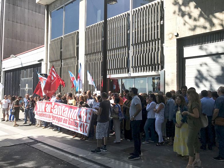 En pleno proceso de aplicación dun ERE para despedir a 3.223 persoas en todo o Estado, o Banco Santander vén de iniciar un novo expediente de regulación de emprego na súa filial "Santander Operaciones", que suporá o peche do centro de traballo que esta empresa ten na Coruña e o despedimento das súas 41 traballadoras e traballadores. Pero ademais, esta medida afectará ás 69 empregadas/os da subcontrata BC Gestión Hipotecaria, que se dedica á formalización das hipotecas do banco. Para denunciar esta situación, a CIG desenvolveu unha concentración esta mañá diante do Edificio Orillamar, que no seu día acolleu os servizos centrais do Banco Pastor.