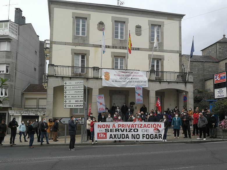 Arredor de 200 veciños e veciñas de Monterroso participaron na concentración convocada pola CIG na tarde deste luns en rexeitamento á decisión do Goberno municipal de privatizar o Servizo de Axuda no Fogar. A CIG reitera que non existen motivos de ningún tipo para levar adiante esta privatización e demándalle ao Concello que recúe nunha medida que só vai traer máis precariedade para as traballadoras e menos calidade asistencial.