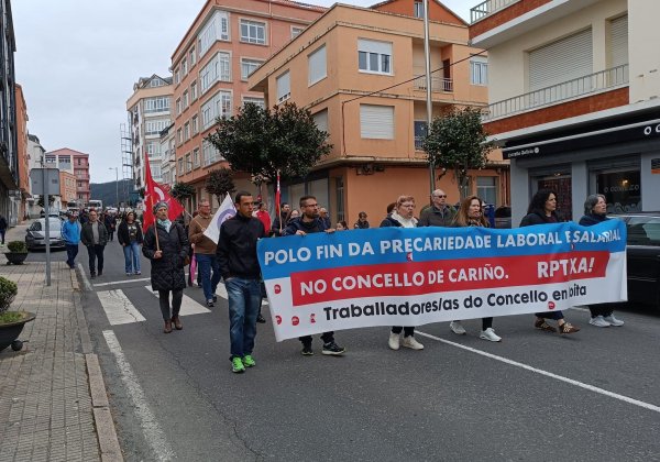 O persoal municipal do Concello de Cariño intensificou esta semana o conflito para reclamar condicións laborais e salariais xustas e está desenvolvendo tres días continuados de folga, que comezaron onte luns, seguen hoxe martes e concluirán mañá, mércores 1 de abril, cunha folga parcial e unha concentración na Casa Consistorial.