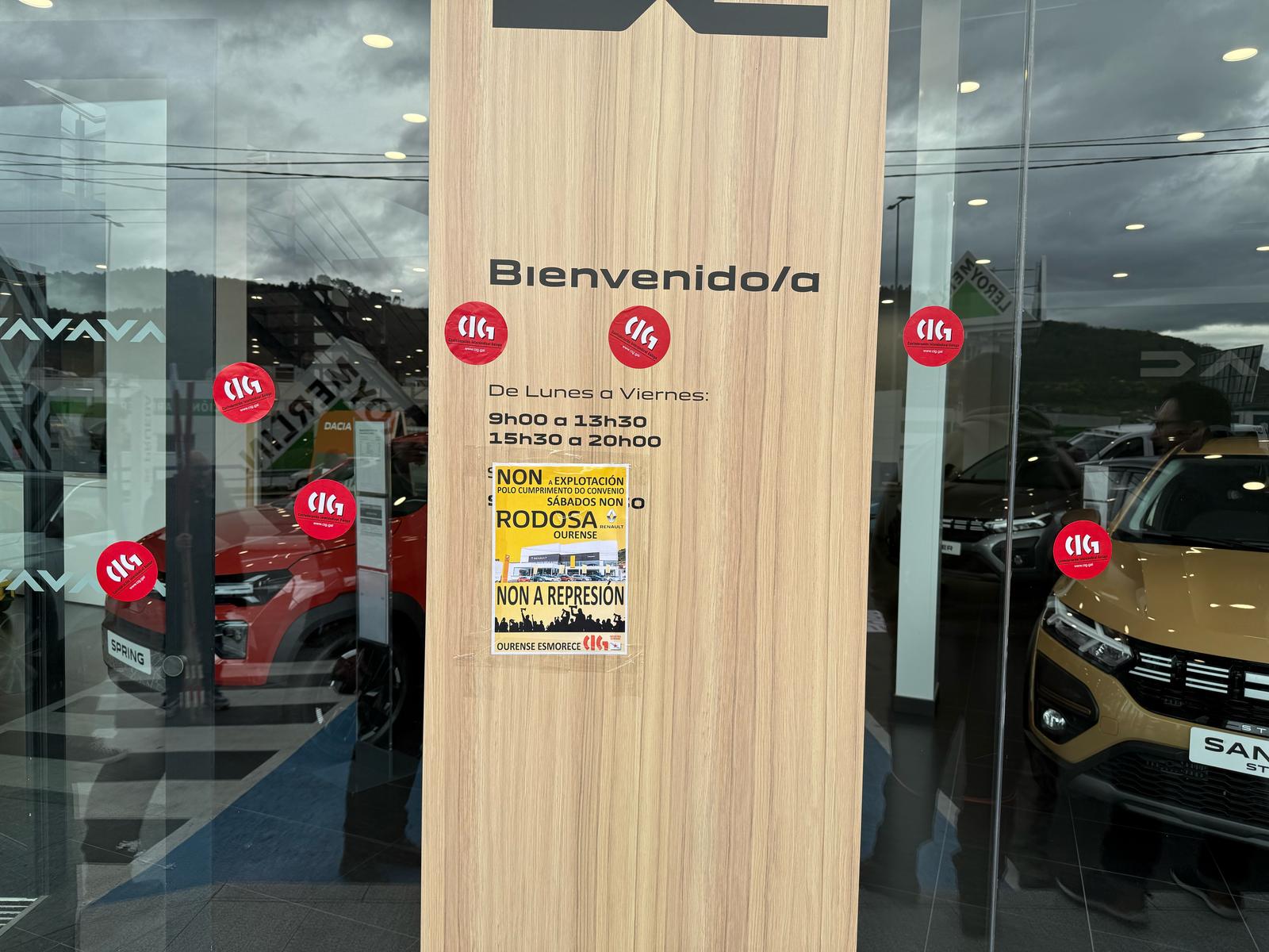 A concentración diante das instalacións da empresa Rodosa desenvolveuse de 11:30 a 12:30 horas para denunciar o incumprimento sistemático do convenio provincial do siderometal por parte de Rodosa, xa que o cadro de persoal ten que traballar os sábado pola mañá. Ademais, a compañía con sede na estrada de Vigo despediu recentemente unha traballadora por causas obxectivos, aínda que finalmente a rescisión de contrato foi considerada improcedente polo Xulgado do Social.