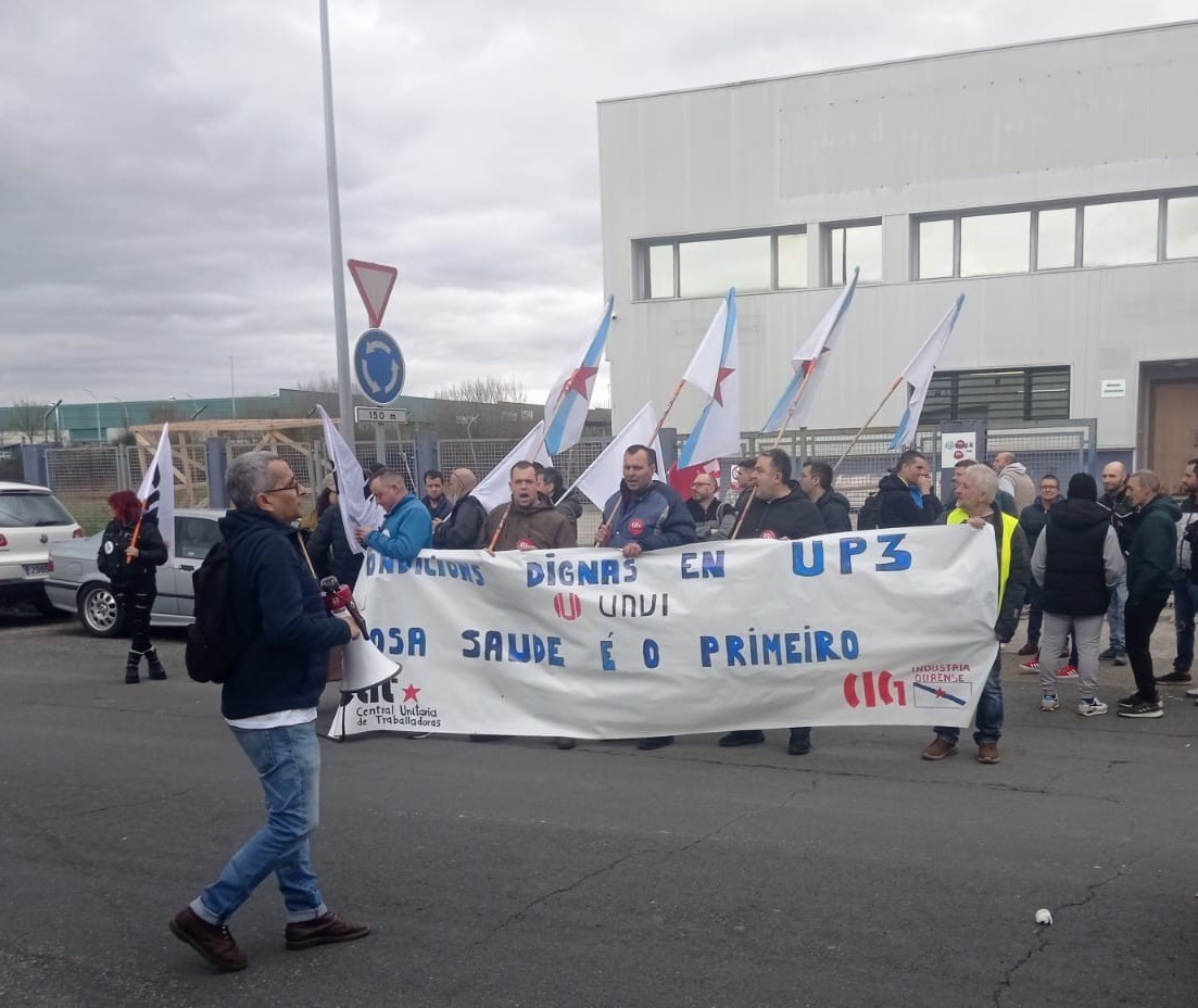 Despois desta mobilización a CIG-Industria levou a cabo unha protesta de 14:00 a 15:00 horas diante das instalacións de UNVI, empresa dedicada á fabricación de autobuses con sede no polígono de San Cibrao das Viñas para reclamar o acondicionamento da nave anexa habilitada pola compañía o pasado verán.
