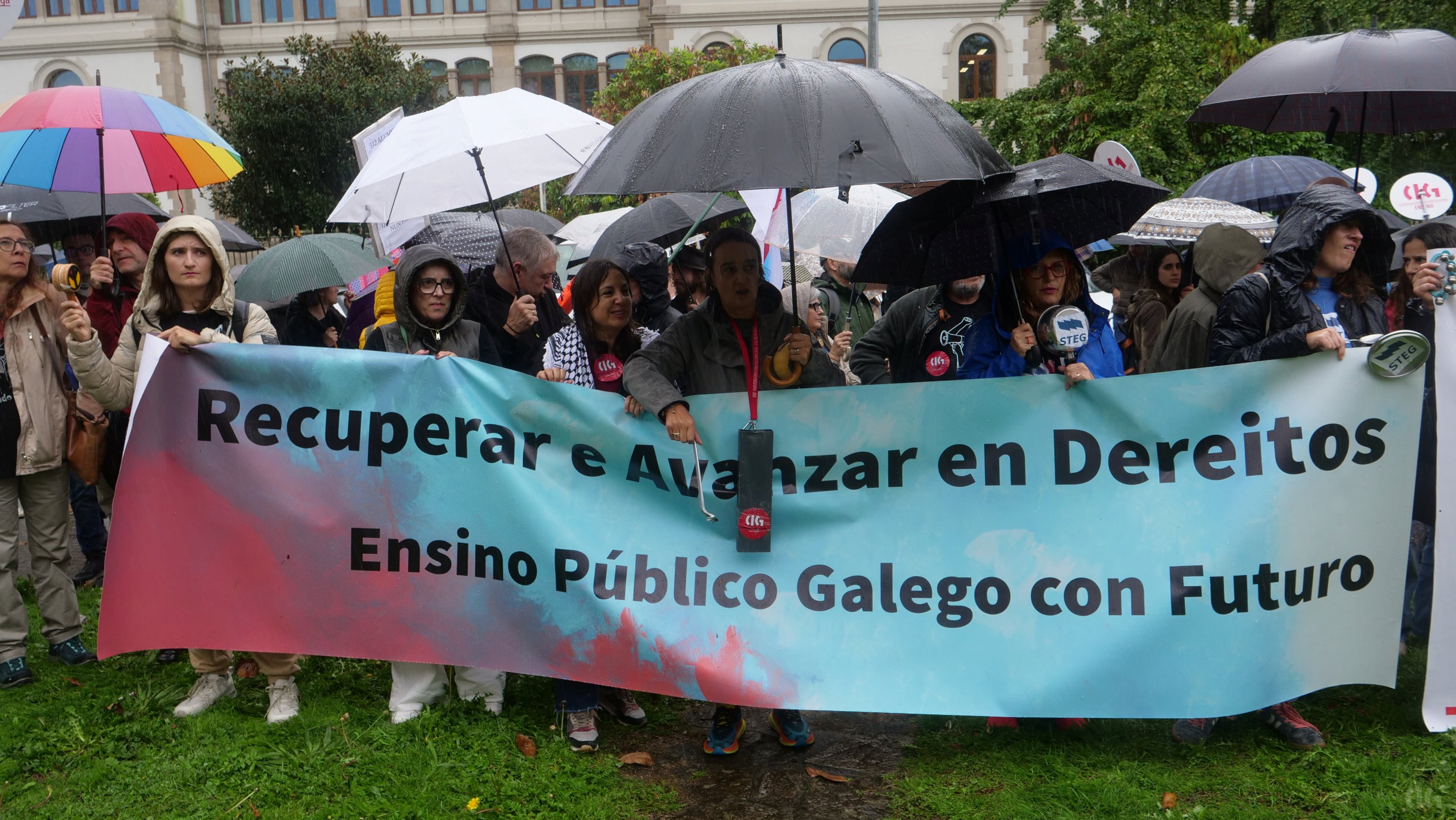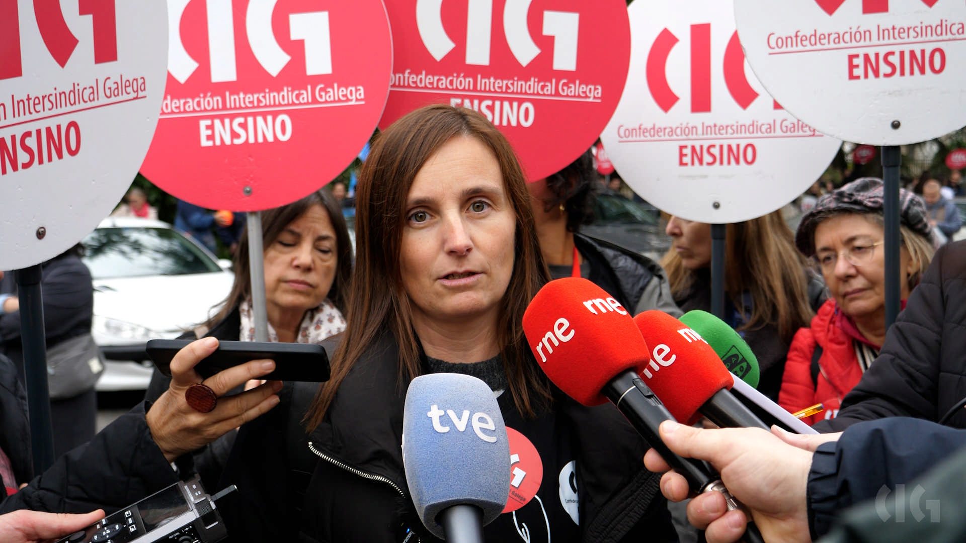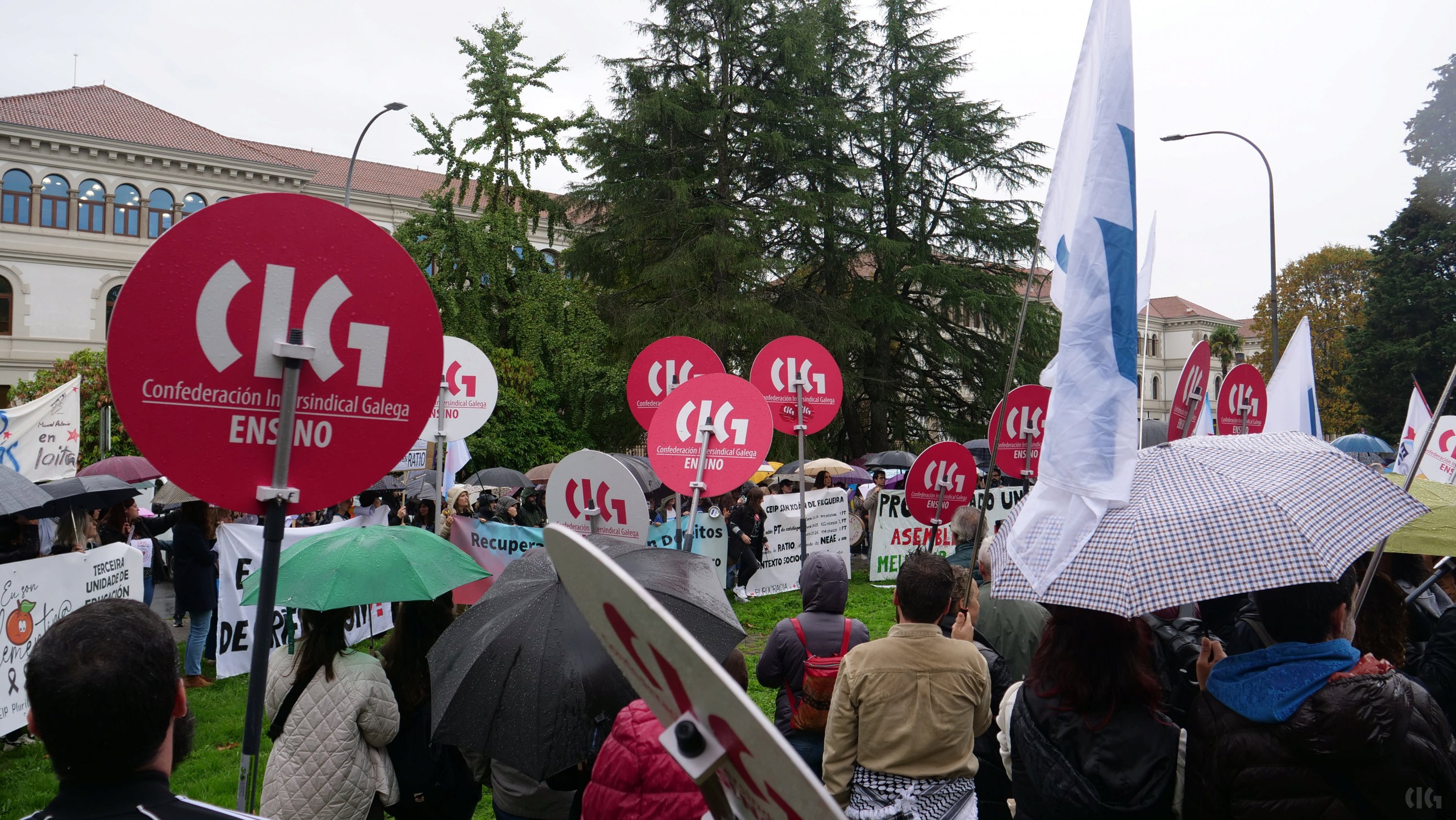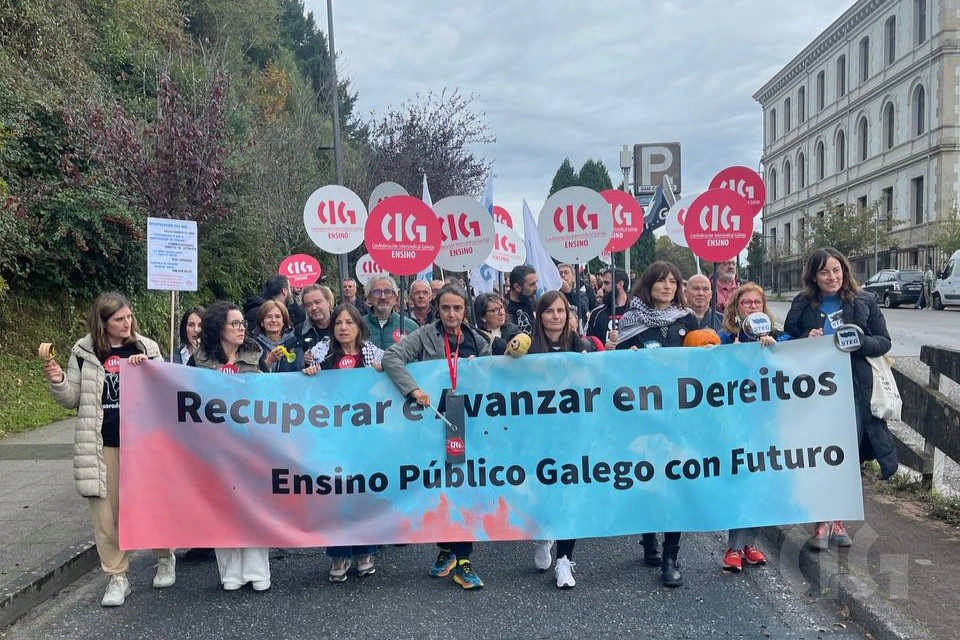 Segundo explicou Laura Arroxo, secretaria nacional da CIG-Ensino, a organización maioritaria dentro do sector, “démoslle a volta á Consellaría porque o que se pretende é que esta lle dea a volta ás súas políticas e se poña do lado do profesorado, invista máis no público e non nas empresas privadas, aumente o número de docentes e non a burocracia, reduza o horario e as ratios e non recorte a nosa liberdade de cátedra como pretende”.