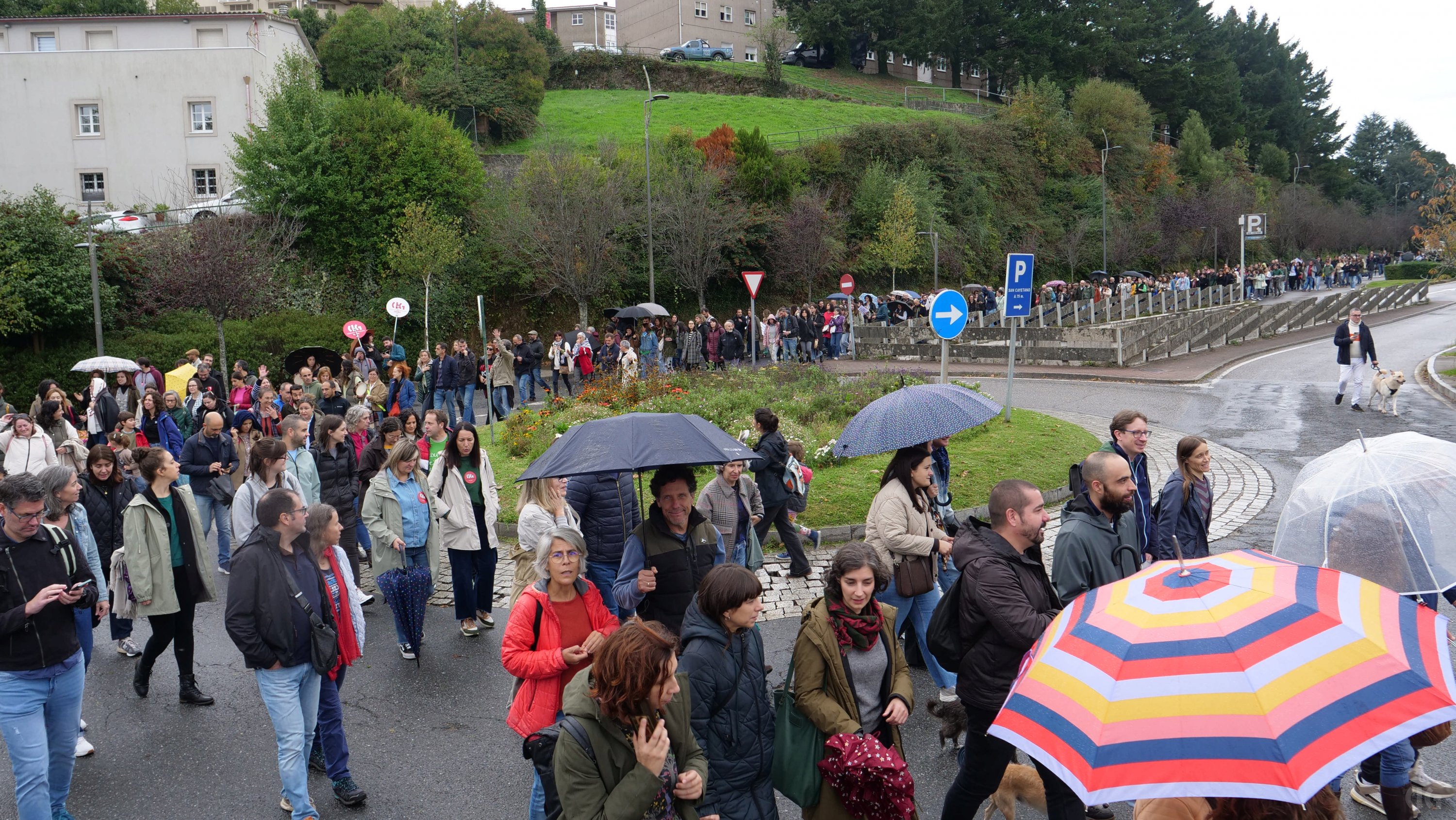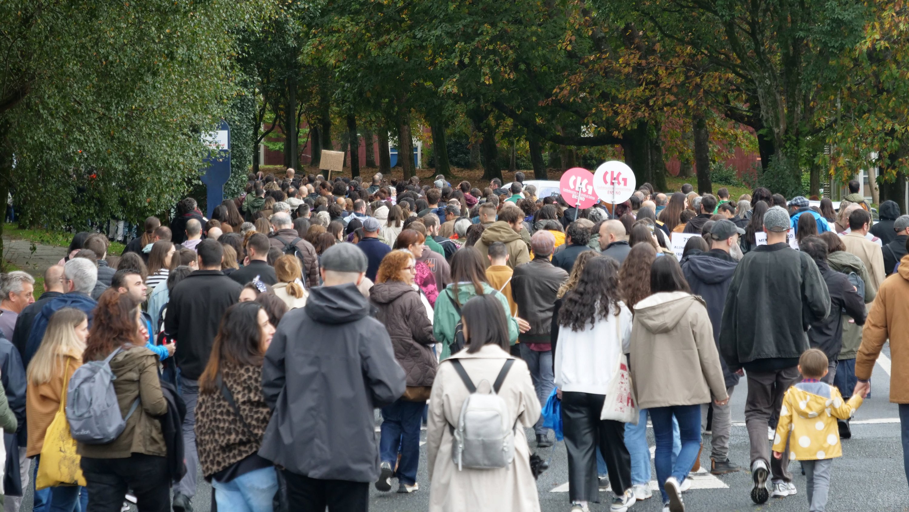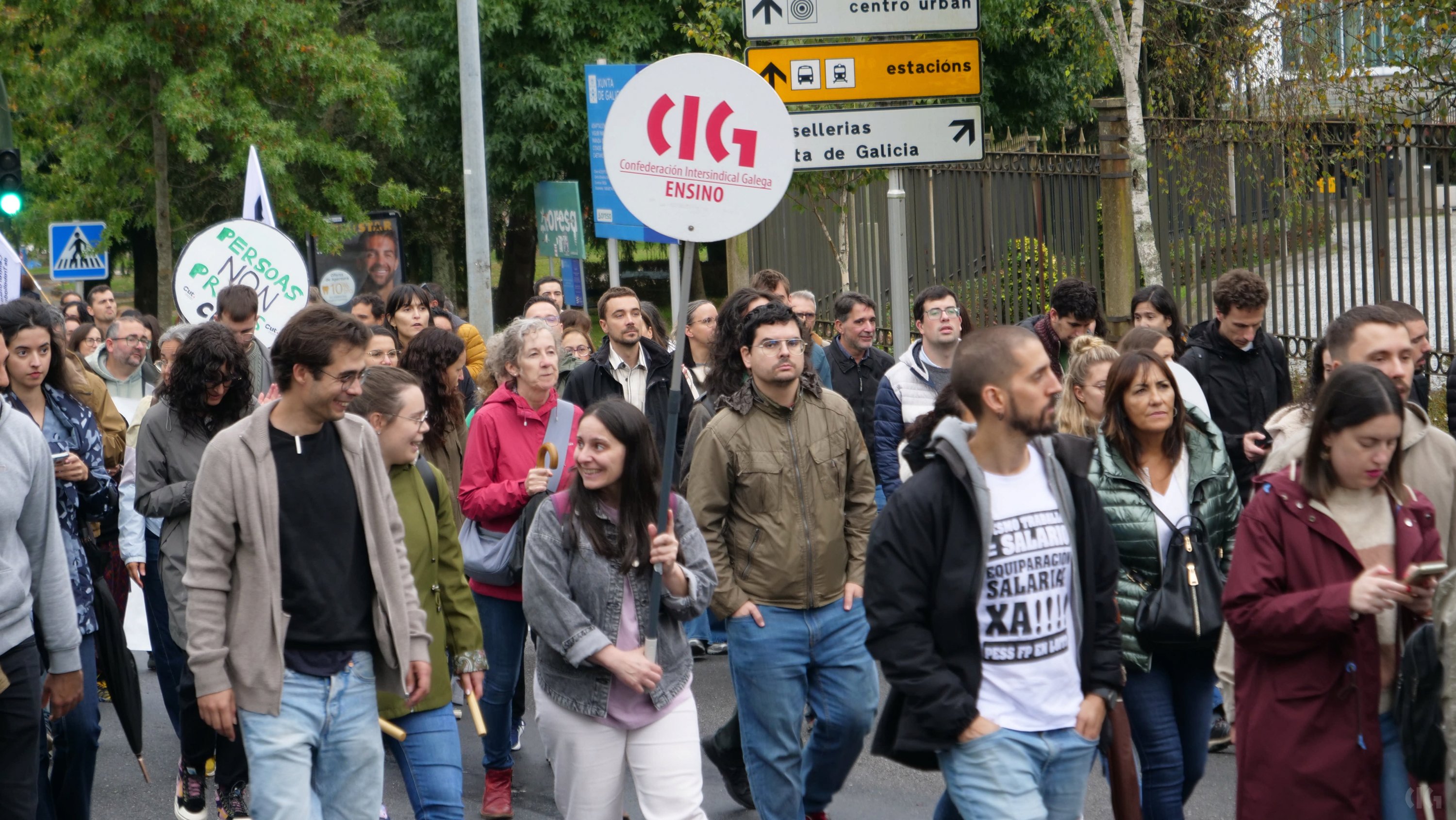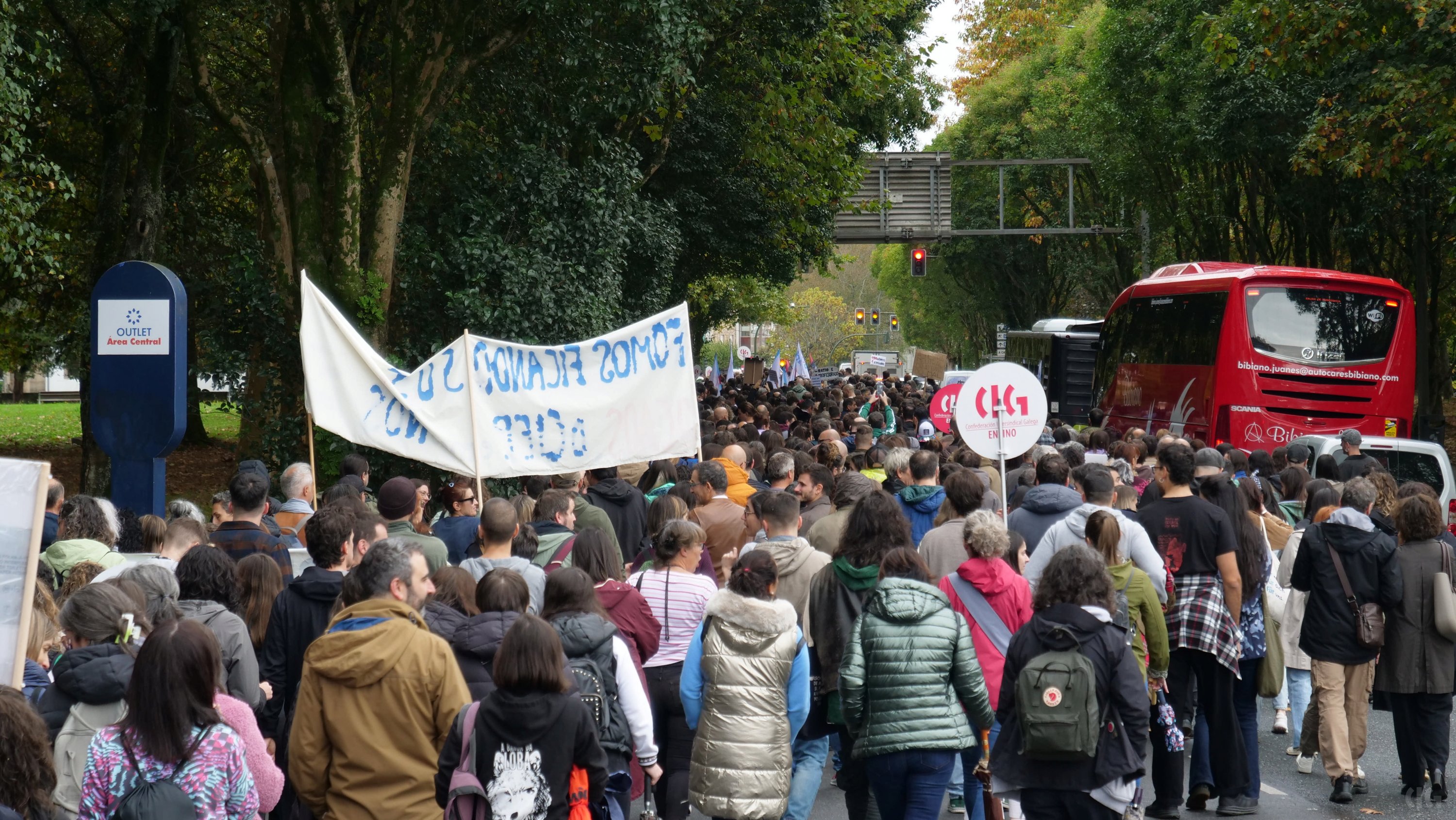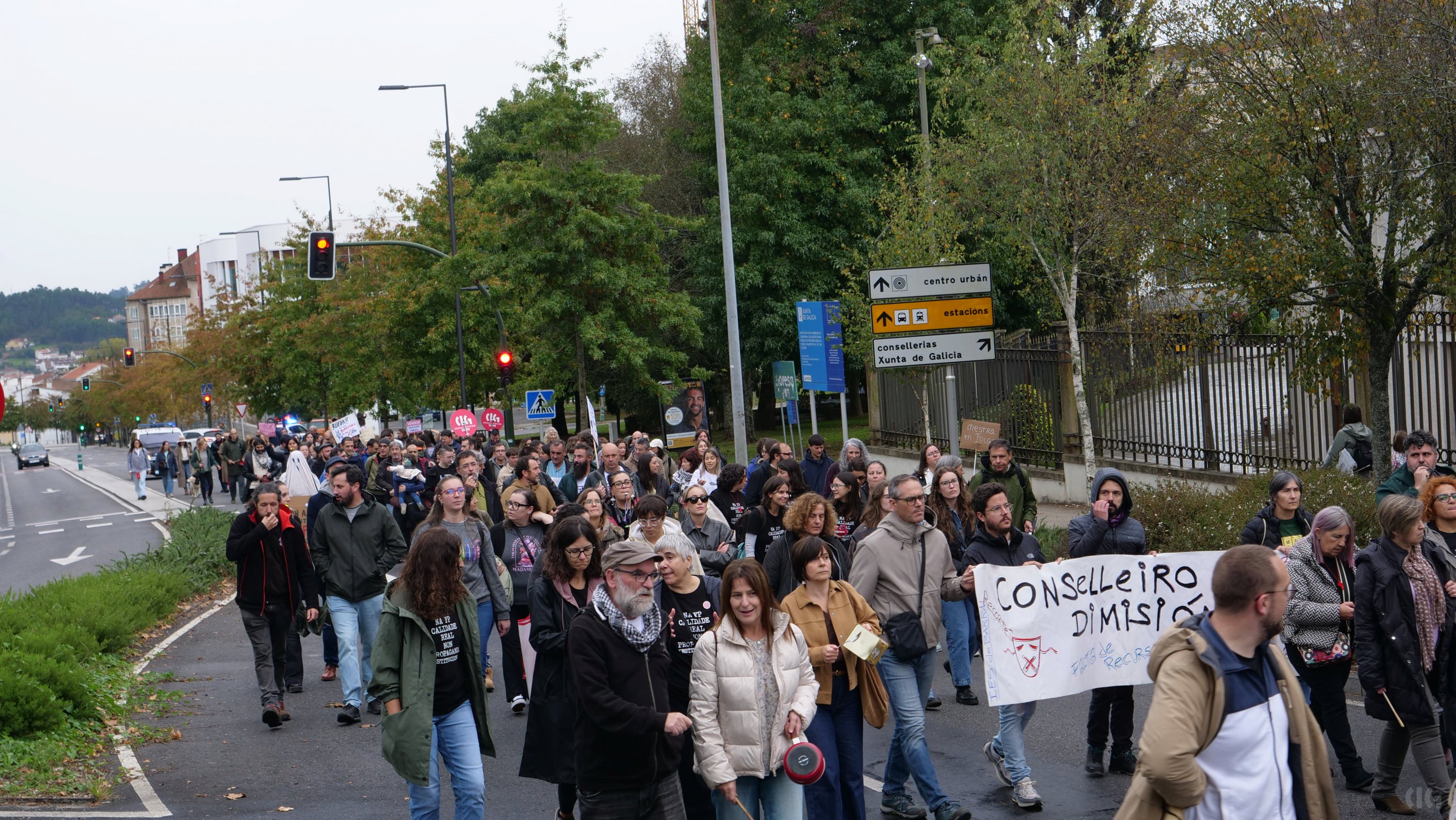 A primeira xornada da folga docente neste mes de outubro, a segunda no que vai de curso, decorreu cun importante seguimento de profesorado, á espera de que se contrasten os datos de participación a partir do vindeiro xoves. O persoal docente, que estes días estivo moi activo nos propios centros colgando faixas reivindicativas e nas redes sociais, volveu responder masivamente á chamada de “virar San Caetano”, unha acción consistente en rodear o edificio administrativo da Xunta e que ante a afluencia de persoas tivo que ver modificado o percorrido previsto.