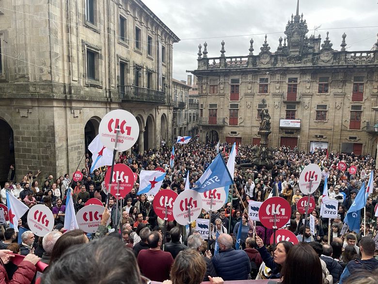 Máis de 4.000 persoas percorreron este domingo as rúas de Compostela en defensa do ensino público. Na manifestación, convocada por CIG-Ensino, STEG e CSIF, participou numeroso profesorado mais tamén familias e alumnado procedentes de toda Galiza, dado que as súas reivindicacións redundan sobre todo na calidade da atención que recibe este último.