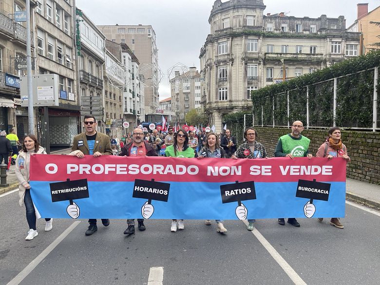 Bermello lembrou que así o manifestou xa o profesorado na folga “máis secundada nos últimos 14 anos”, con diversas accións de protesta nos centros, ao igual que nesta manifestación, “nun novo exercicio de dignidade e de firmeza esixindo o respecto que merece. Está claro que non hai ningunha das medidas incluídas neste acordo que vaia supoñer un incremento dos fondos dedicados a reforzar o persoal docente porque así se está vendo na negociación dos orzamentos da Consellaría para o vindeiro ano, o que demostra que estamos ante un engano total e unha fraude ao profesorado”.
