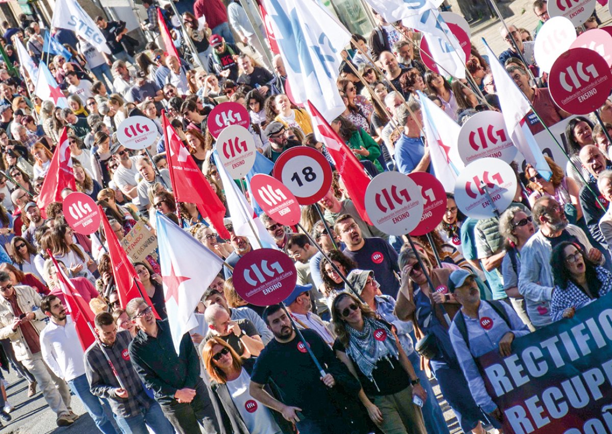 Profesorado, alumnado e ANPAS tomaron o pasado 25 de setembro as rúas de Compostela, coincidindo coa xornada de folga convocada para denunciar a política de recortes e propaganda do PP na Xunta de Galiza e para reclamar a recuperación de dereitos. Unha folga na que a CIG-Ensino situou por riba do 60% a porcentaxe de asistencia, cun incremento moi importante en infantil e primaria a respecto dos paros de 2023, “o que demostra a fartura e o malestar do profesorado coas políticas da Consellaría”.