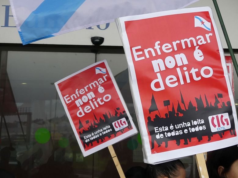 Máis do 75% das traballadoras e dos traballadores de Extel están secundando a xornada de folga de 24 horas convocada pola CIG para este mércores 8 de xaneiro, baixo o lema "Enfermar non é delito". Unha medida de presión que estivo acompañada por unha concentración diante das oficinas de Extel e coa que se quere denunciar o novo recorte de dereitos aplicado pola empresa, que ataca directamente a saúde dos traballadores e das traballadoras limitando o uso das horas médicas, eliminando os partes de repouso, obrigando a coller unha baixa aínda que sexa dun só día (co conseguinte prexuízo económico). Pero o máis grave de todo, advirte a sección sindical da CIG, é que a empresa pretende empregar esta estratexia para xustificar despedimentos en base a un suposto absentismo.