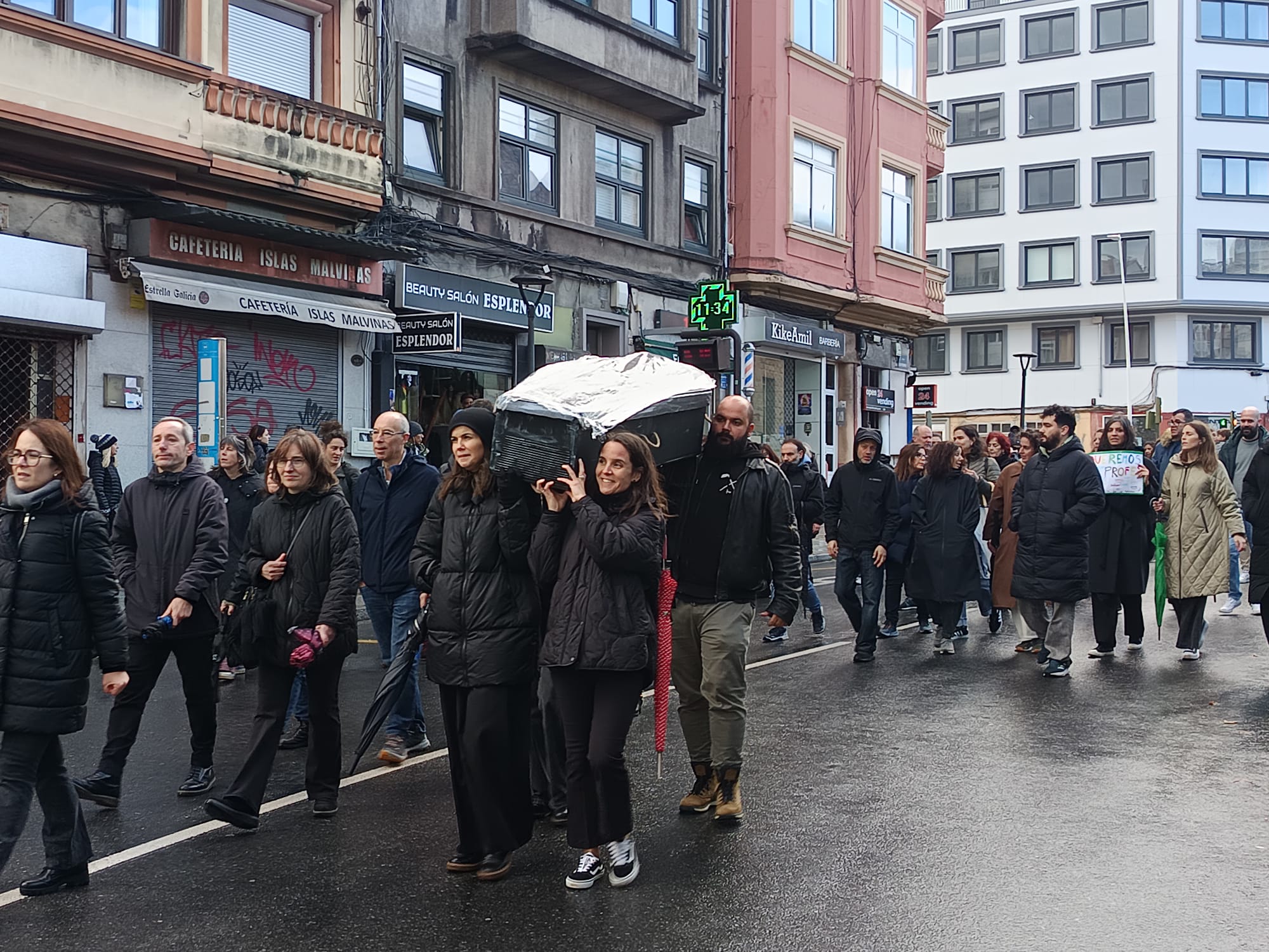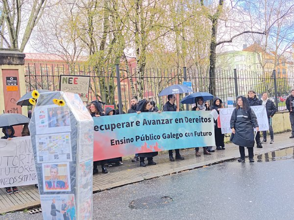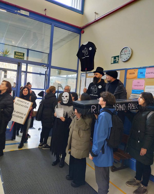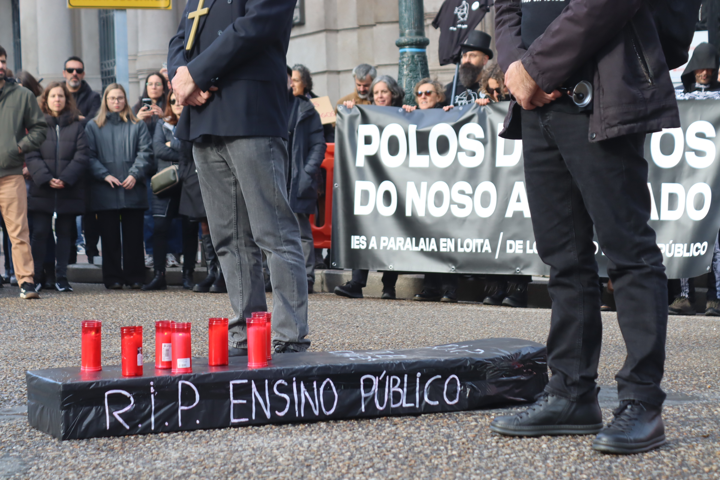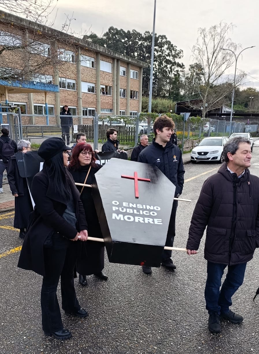 Trátase da manifestación organizada a modo de enterro do ensino público galego, “que as políticas da Consellaría está deixando que morra e non precisamente de forma lenta”, que unirá o edificio onde estes días se aprobaron os Orzamentos da Xunta para 2026 coa sede da Consellaría de Educación, en San Caetano.