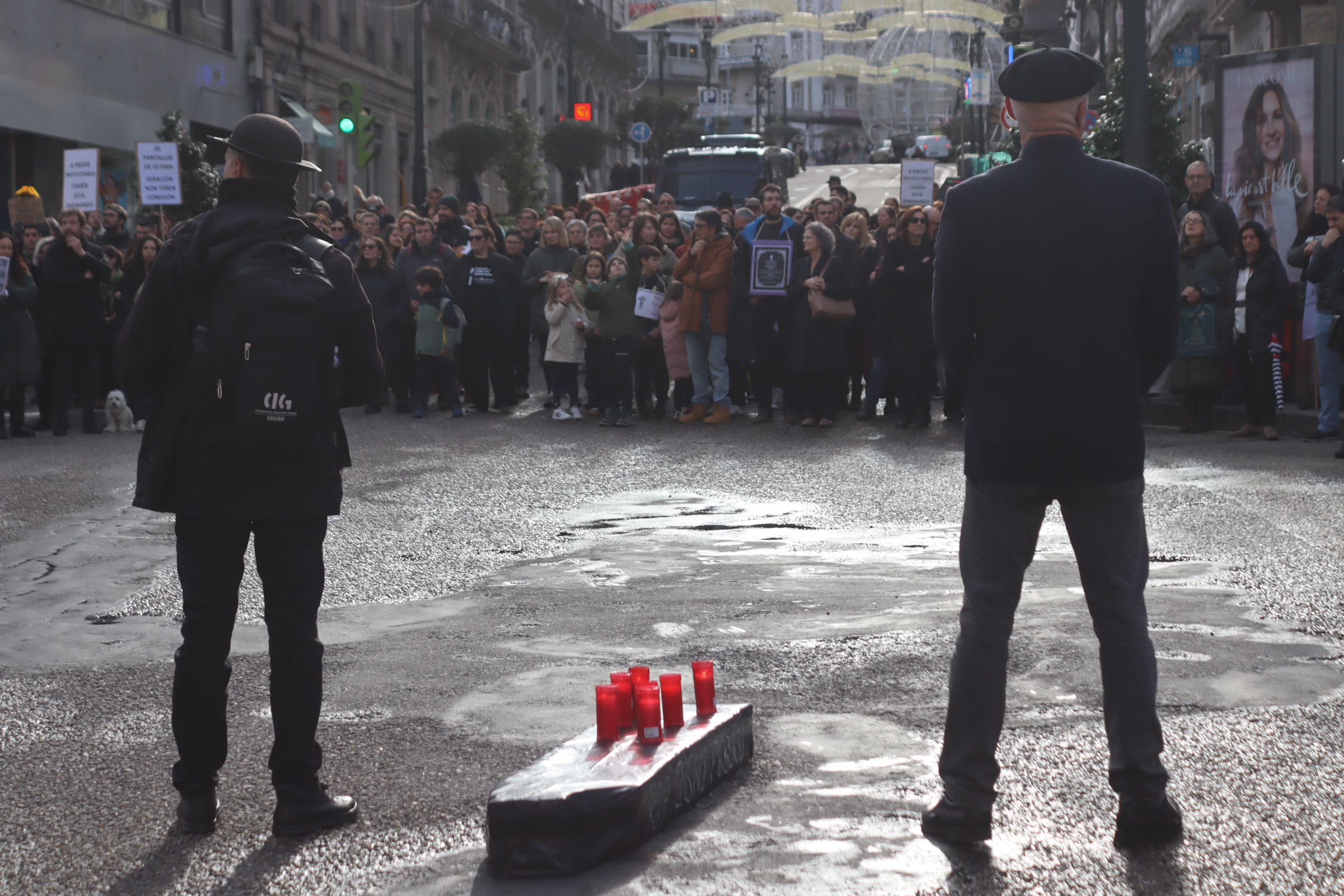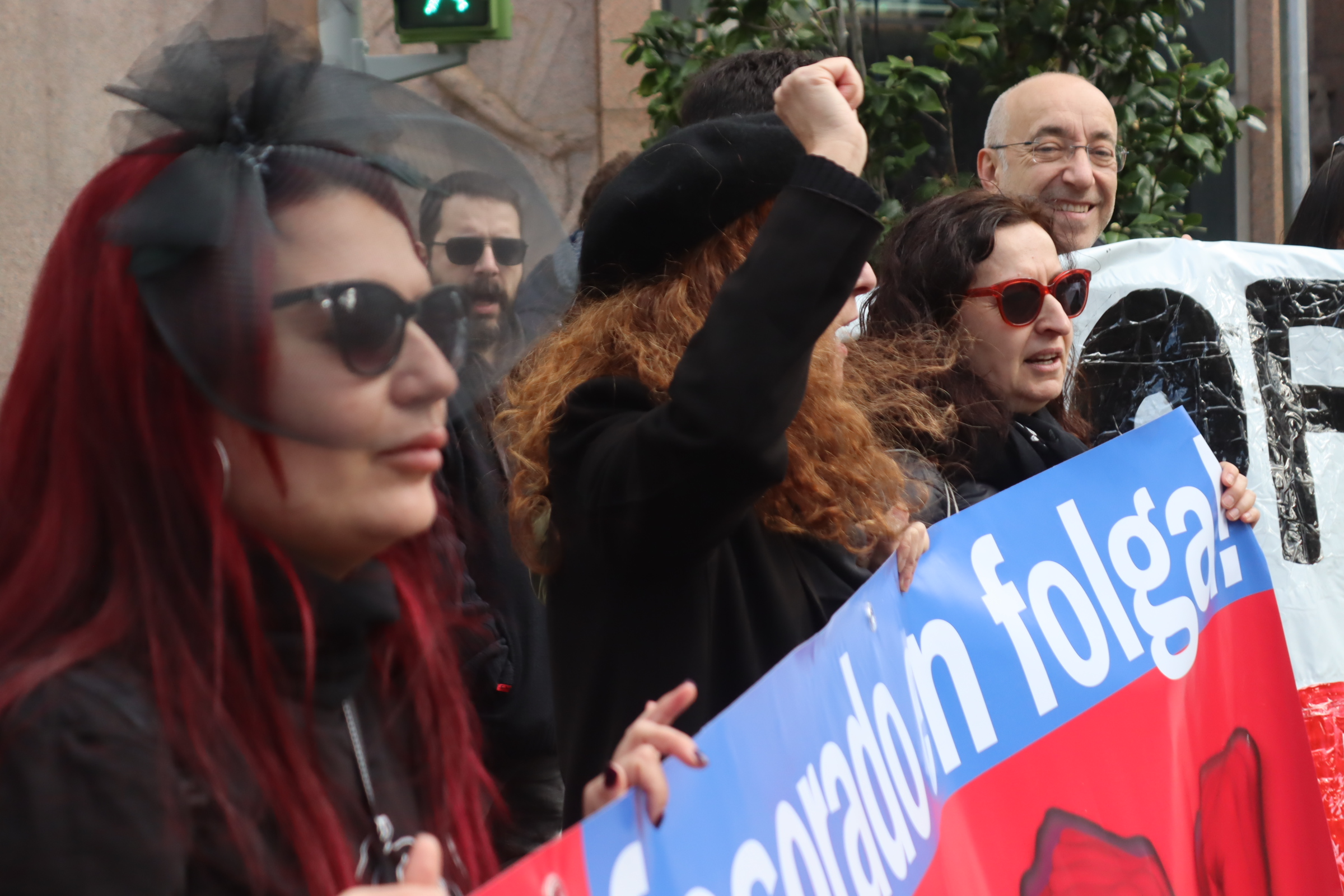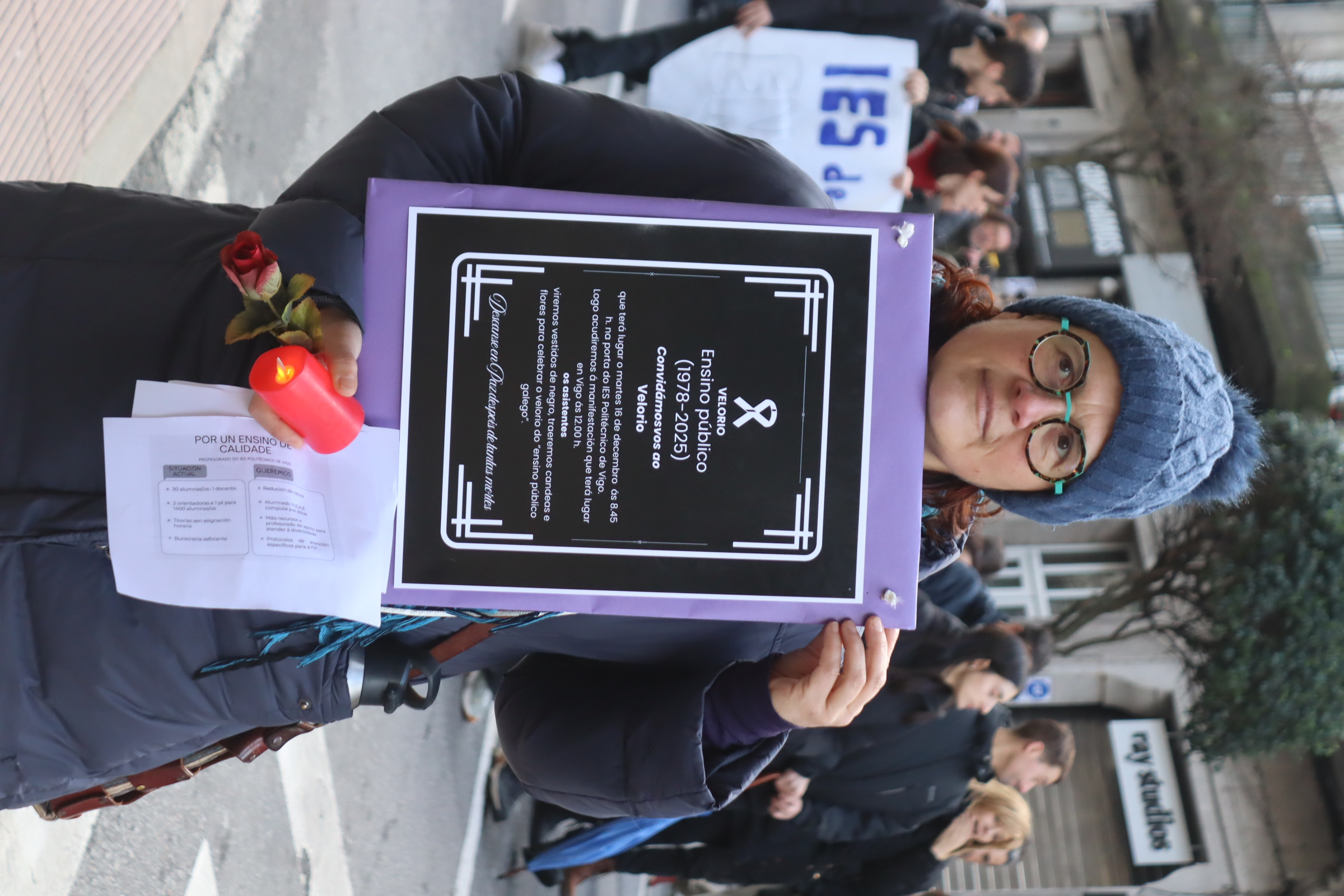 O profesorado galego volveu dar unha lección dignidade, “esa que nos quixeron roubar coma os dereitos laborais pero que aínda nos queda e moita”, como rezaba o manifesto lido ao final das máis de 20 marchas fúnebres e mobilizacións que tiveron lugar espalladas por todo o país durante o cuarto día de folga neste trimestre. Durante as marchas, realizadas nas sete cidades e mais Monforte, O Vicedo, Viveiro, Sober, Negreira, Cangas, Bueu, Moaña, Redondela, Gondomar e Ponteareas, as persoas participantes, maioritariamente profesorado pero tamén membros de ANPA, familias e alumnado, vestían de negro e portaban simboloxía mortuoria.