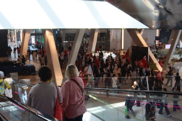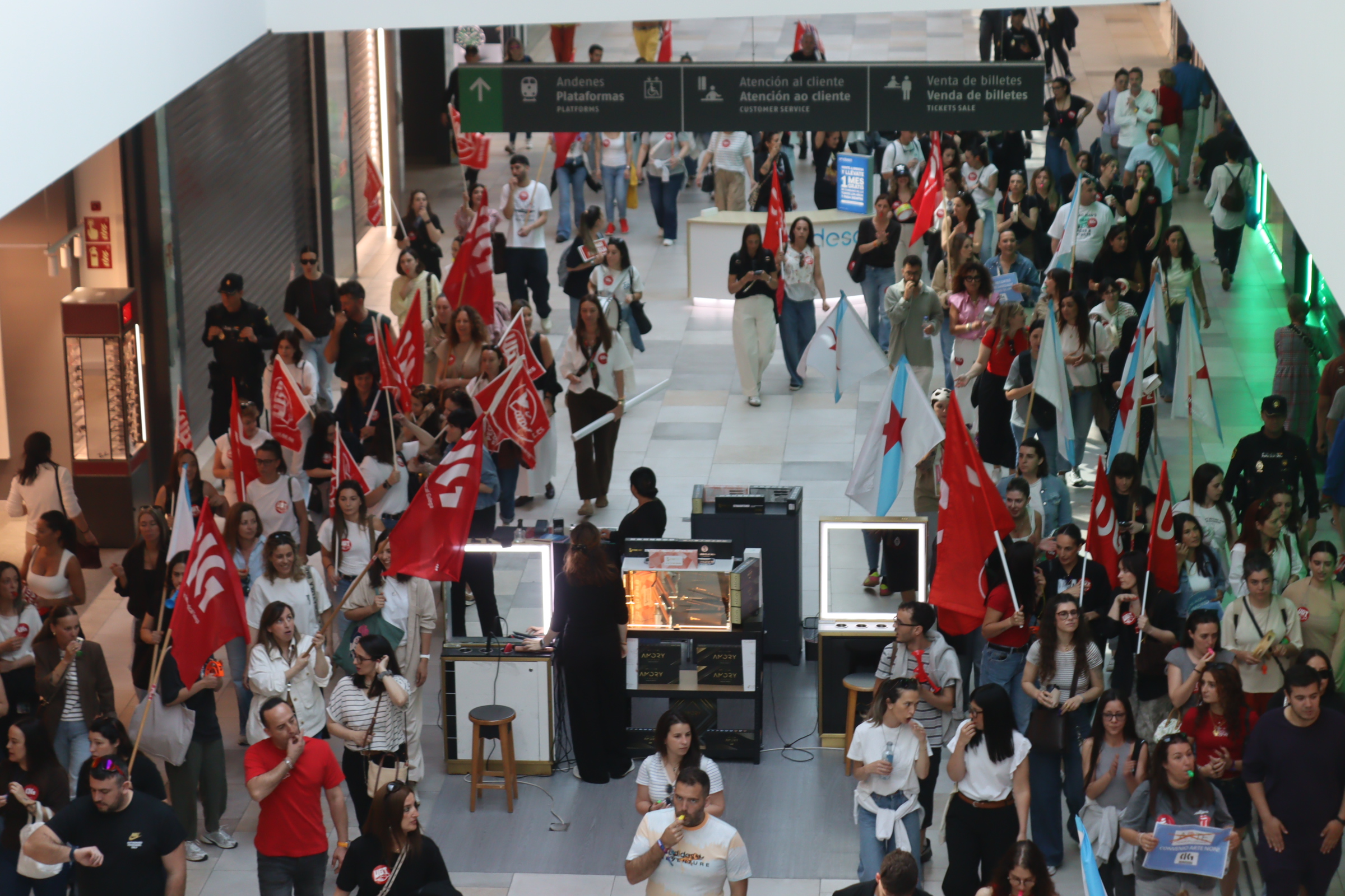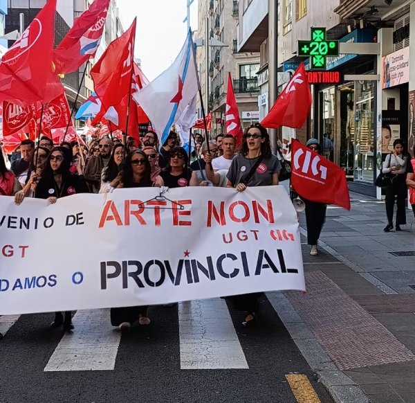 A nova xornada de folga convocada hoxe pola CIG no marco da loita contra o convenio ARTE (Asociación Retail Textil de España) rexistrou un seguimento aínda maior que a anterior, con máis centros de traballo pechados e milleiros de persoas traballadoras do gran comercio téxtil e de calzado nas rúas das catro provincias galegas. A mobilización coincidiu con outra xuntanza da mesa negociadora en Madrid, na que a patronal entregou o resto da plataforma de convenio, confirmándose a súa pretensión de precarizar as condicións laborais e centralizar a negociación colectiva deixando sen efecto as melloras e dereitos contemplados nos convenios provinciais.