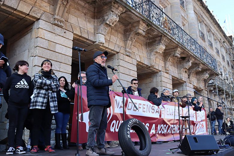 A plataforma SOS Sanidade Pública de Galicia, tras o traballo que están a realizar as Plataformas en Defensa da Sanidade Pública nos ámbitos locais, agradecemos a toda a poboación, a que está aquí e a que apoiou a ILP, e emprazamos o goberno do PP a unha negociación real. O lema desta manifestación Multitudinaria, é “En Defensa da Atención Primaria e do Sistema Sanitario Público Galego”. Fagamos que a partir de hoxe, podamos reverter esta situación.