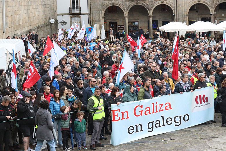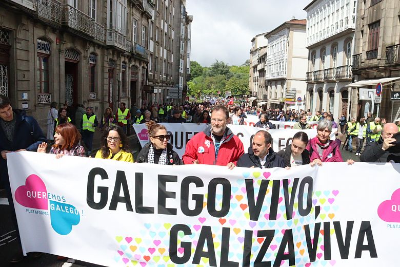 Ao berro de "Galego vivo", milleiros de persoas manifestáronse neste 17 de Maio, Día das Letras Galegas, polas rúas de Compostela para reclamarlle aos gobernos, nomeadamente a Xunta de Galiza, que asuman as súas responsabilidades na defensa e promoción da lingua propia de Galiza e que acompañen a sociedade "que actúa e se mobiliza día a día para termos o galego vivo".