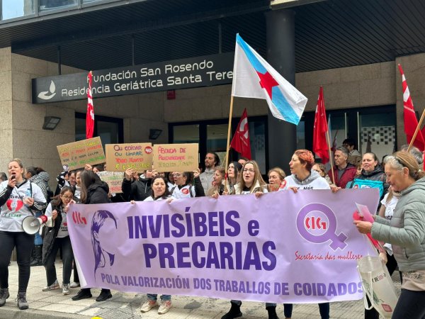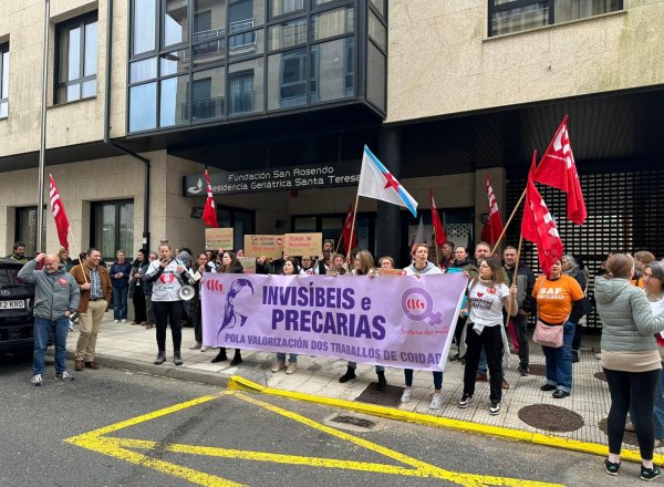 Na concentración, que se desenvolveu de 11:00 a 12:00 horas ao berro de “Non somos escravas, somos traballadoras” e “San Rosendo, escoita, estamos en loita”, participaron medio cento das arredor de 80 persoas que traballan na residencia, que estiveron acompañadas por delegadas da CIG no sector dos coidados (SAF e residencias).