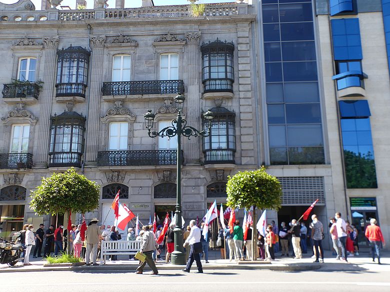 A concentración, que se desenvolveu na rúa Areal de 11:00 a 11:30 horas, convocouse despois de que na xuntanza celebrada onte entre o comité e a directora financeira da empresa e os seus asesores -o despacho Garrigues- se contatase que se están a poñer atrancos ao proceso de venda a pesar de que existe unha oferta firme dun inversor galego. Por iso unhas das consignas máis coreadas durante a protesta foi “Non pode ser, non poder ser, que haxa comprador e Garrigues sen vender!”.