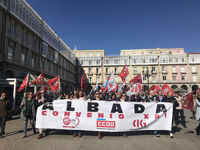 A este respecto, Hadrián Canosa, delegado da CIG, apuntou que o actual convenio de Albada está caducado e remata a ultravixencia a 31 de decembro deste ano. A partir desa data o persoal pasará a estar rexido polo convenio estatal de sector, que contempla unhas condicións moi inferiores. Canosa subliñou que "os traballadores e as traballadoras só pedimos recuperar os dereitos que tiñamos en 2013 e que os salarios se actualicen cando menos cos IPC destes anos". Unha actualización que, lembrou, a empresa lle está a reclamar ao Concello da Coruña "pero que non lle quere aplicar os seus traballadores e traballadoras".