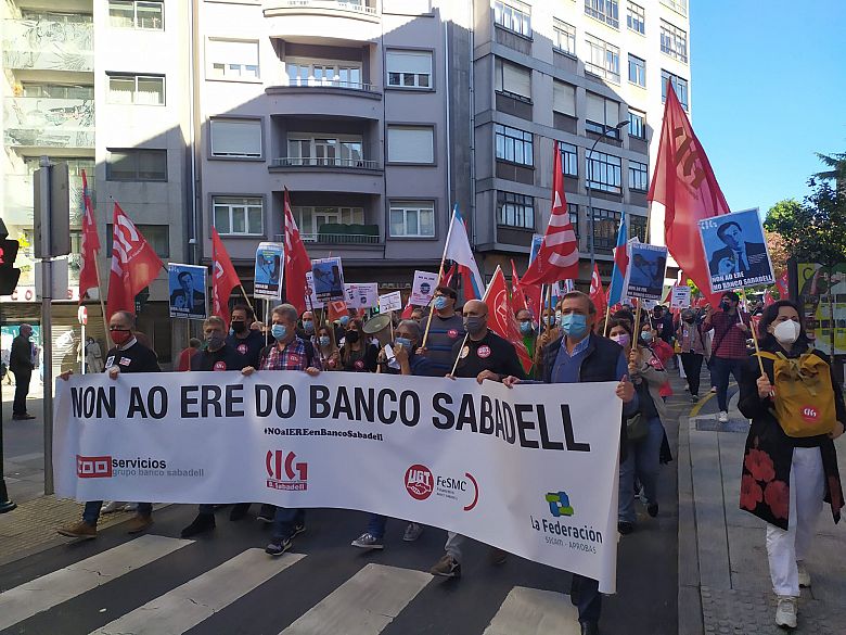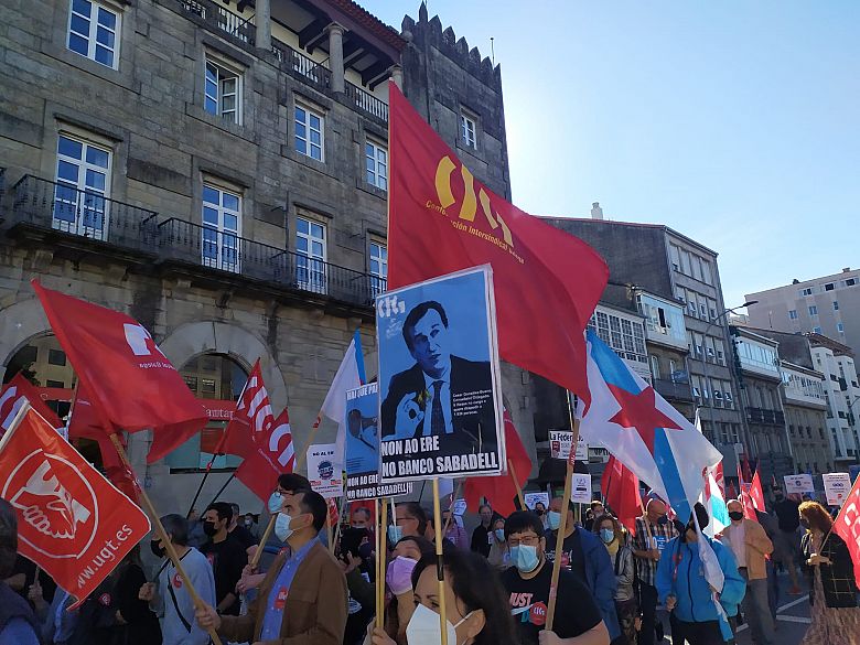 Nova xornada de folga e manifestación contra o ERE do Sabadell que afectará de xeito principal ás traballadoras