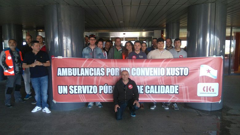 O persoal denuncia a situación de abandono e desidia cun servizo público básico como é o do transporte sanitario, cun convenio caducado dende hai máis de dous anos e coa pretensión da patronal de aplicar un descolgue de até o 25% "dos nosos salarios e condicións laborais".