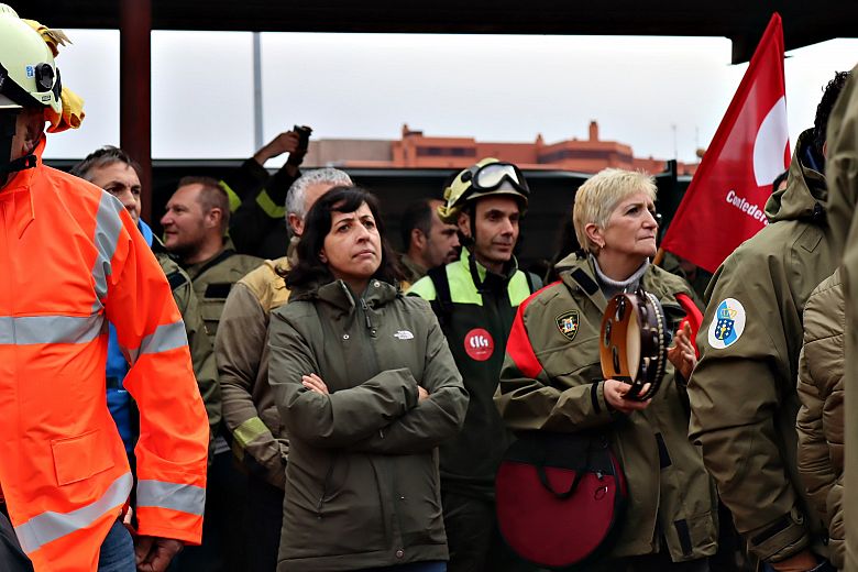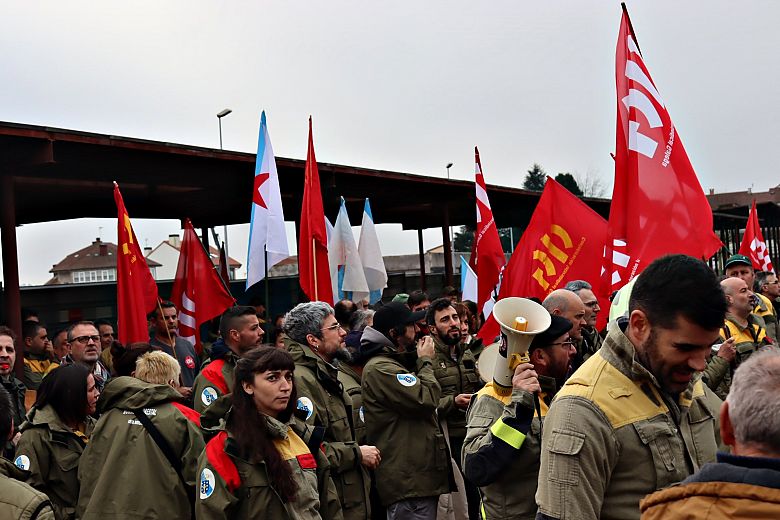 O colectivo de bombeiros/as fortestais está conformado por preto de 1.200 brigadistas que traballan doce meses ao ano e máis de oitocentos que traballan unicamente seis meses ao ano. Denunciou que a crise dos péllets demostrou que a Xunta “prefire tirar de empresas antes de chamar ao seu propio persoal” e lembrou que nestes días o risco de incendios era cero, que “tiña ao persoal, tiña os medios, ao persoal espallado polo territorio e a capacidade de poder chamar e mobilizar, en apenas unhas horas, ao persoal da consellaría de Medio rural. Non o fixo, nin ao da consellaría de Medio Ambiente e moito menos aos bombeiros e bombeiras forestais que estaban no territorio e dispostos”.