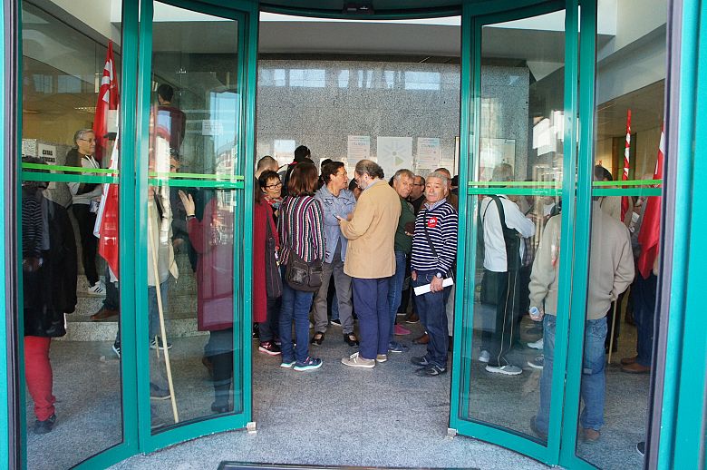 O colectivo de xubilados/as e pensionistas da CIG concentrouse este mércores diante das oficinas do INSS de Compostela, Ferrol, Pontevedra, Lugo e Vigo -onde ademais ocuparon o edificio- en defensa do sistema público de pensións e para desmontar a “mentira” de que non é viábel. Xunto a isto denunciaron as consecuencias das reformas, demandaron a revalorización anual das pensións atendendo ás subas do IPC, garantías para a sustentabilidade do sistema público e un incremento das pensións mínimas para que se equiparen, como mínimo, ao Salario Mínimo Interprofesional.