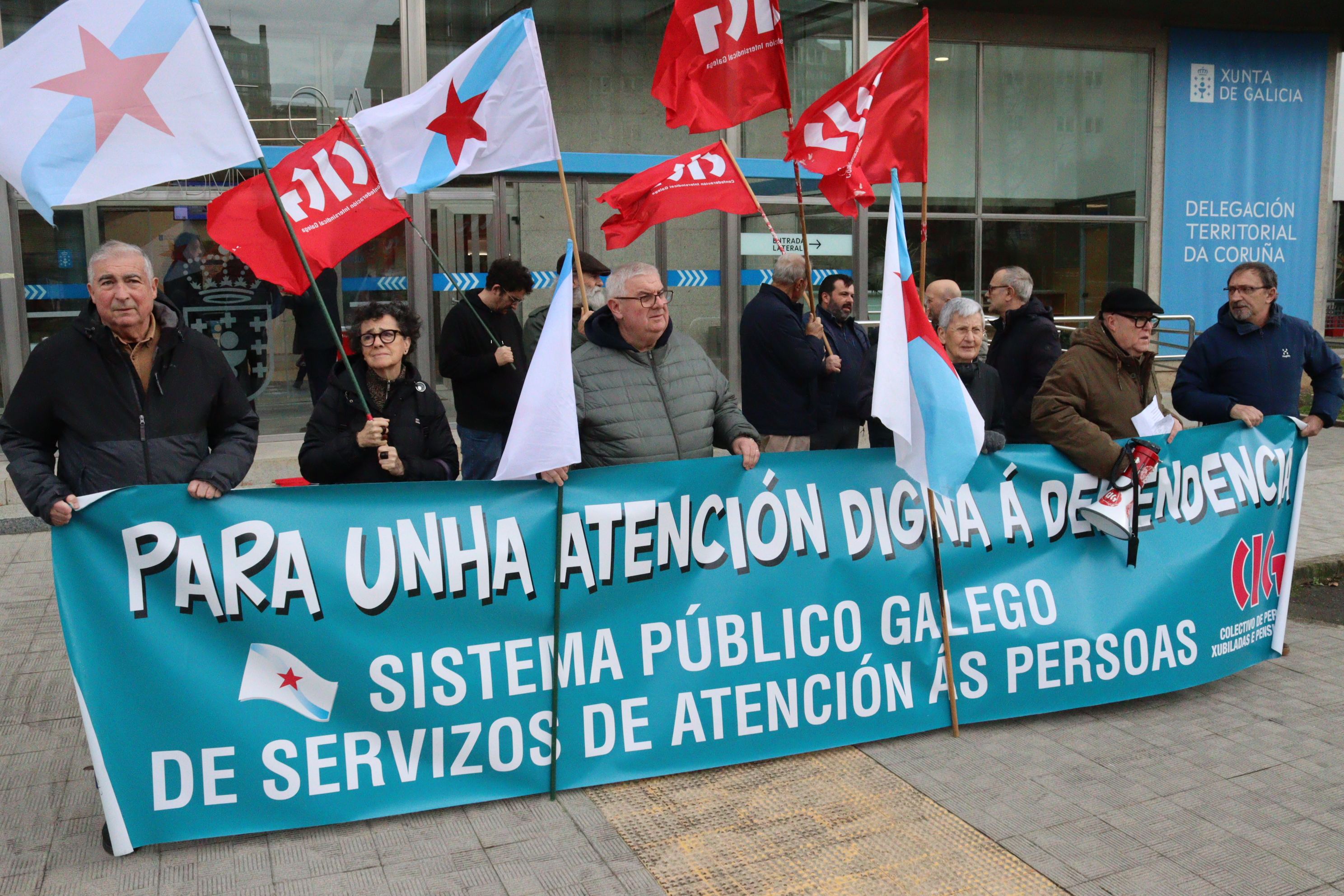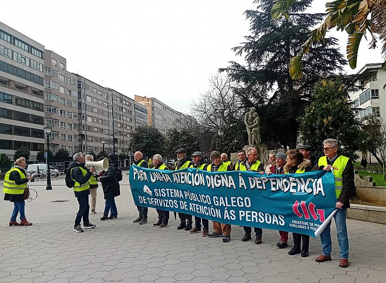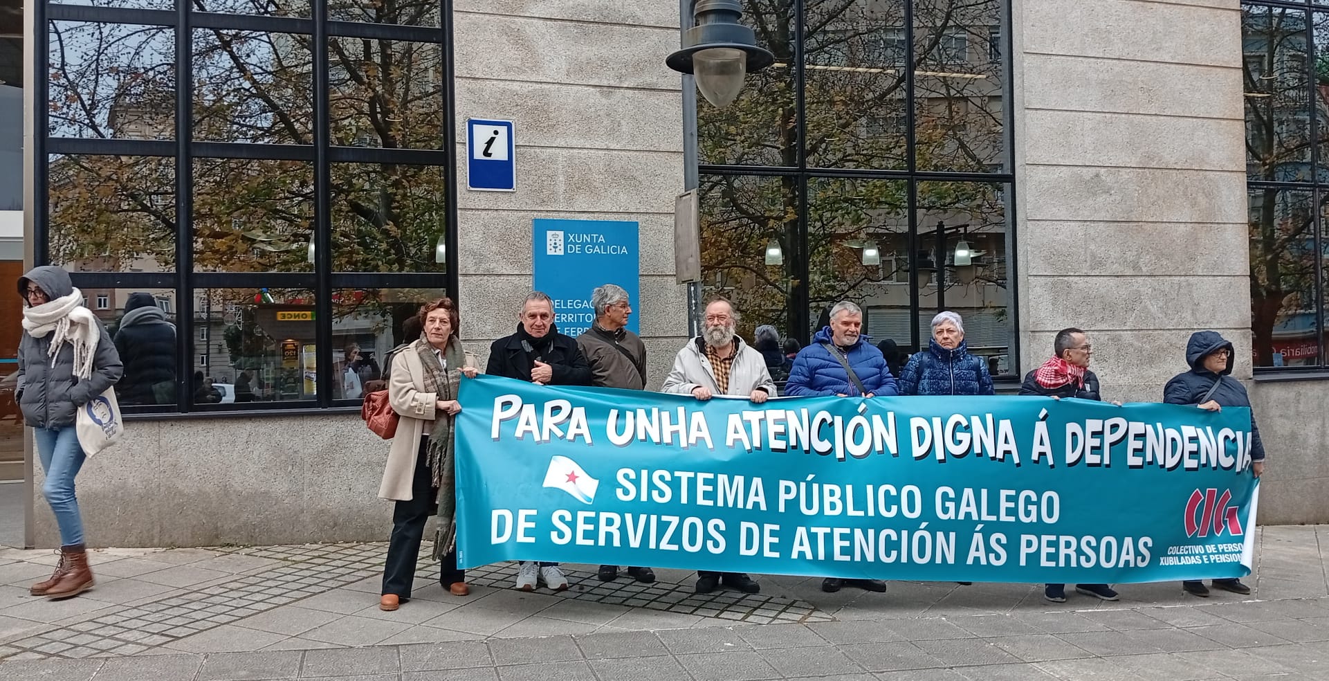 O colectivo lembrou que en Galiza as esperas para que se resolva unha prestación son de máis dun ano, que miles de persoas morren coa dependencia aprobada pero sen chegar a recibila e que hai milleiros agardando “desesperadas, por unha axuda que nunca chega”.