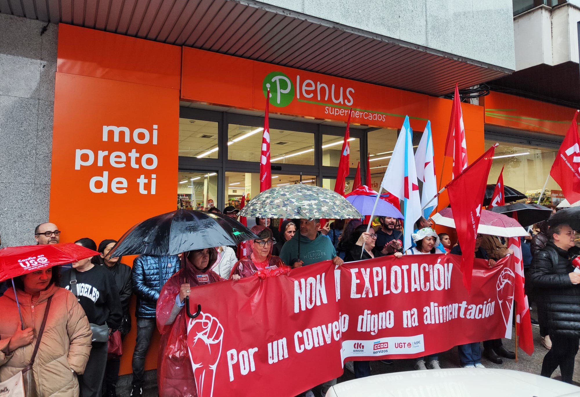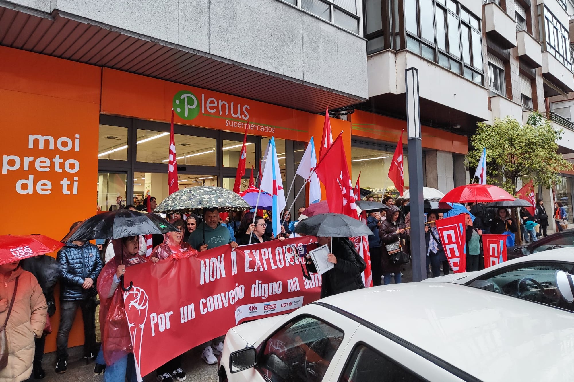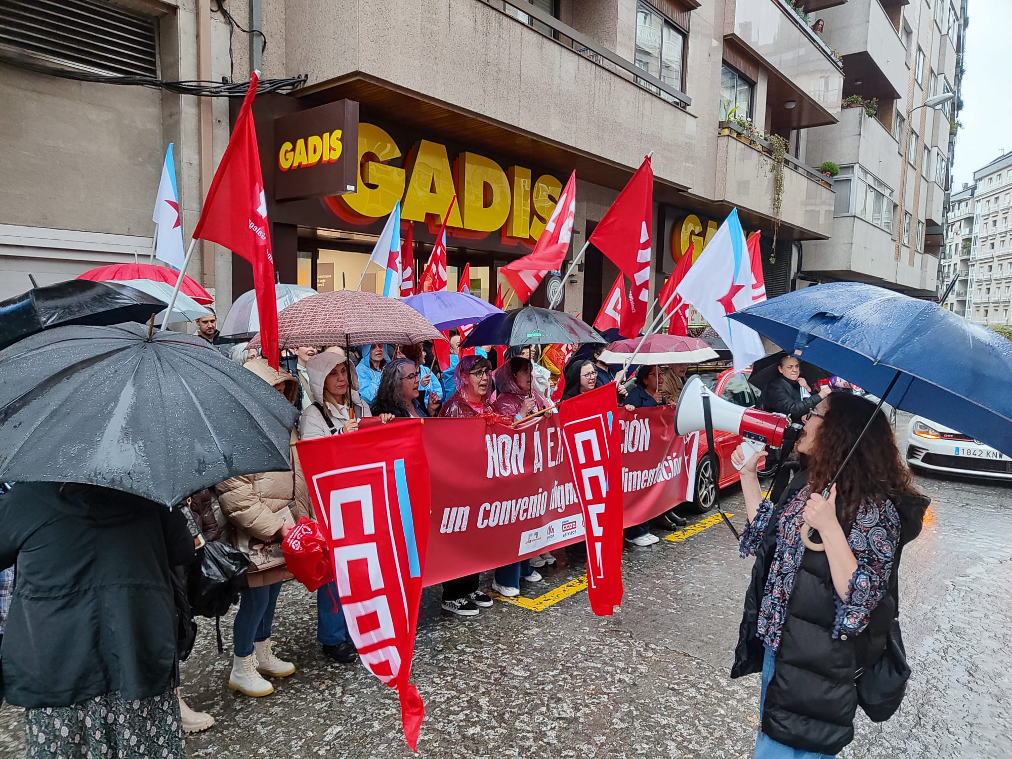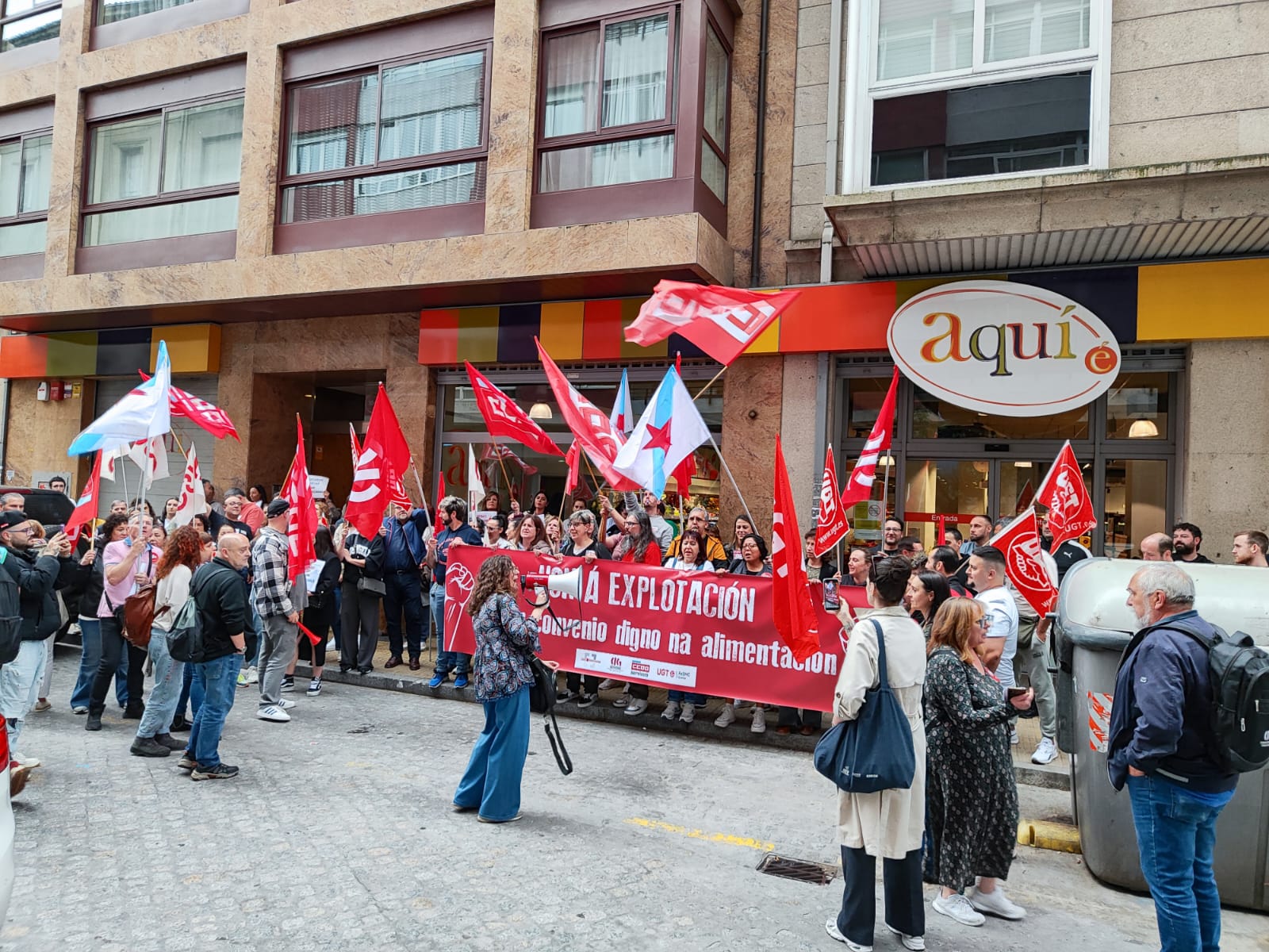 As concorridas protestas diante de establecementos dos tres grupos empresariais que negocian o convenio colectivo (Froiz, Gadis e Cuevas) desenvolvéronse ao longo de boa parte do día, con concentracións pola mañá e pola tarde ao berro de “Esta batalla ímola gañar”. Durante as protestas convocadas pola CIG, CCOO, UGT e USO berráronse tamén consignas como “Emprego digno e con dereitos”, “Non, non, non á explotación” “Queremos traballar e non mendigar”, “O noso sacrificio é o seu beneficio” e “Estamos fartas de ser explotadas”.