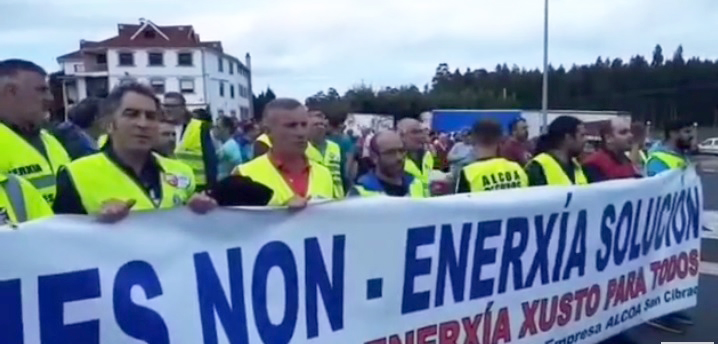 Os traballadores e as traballadoras de Alcoa continuaron este venres co calendario de mobilizacións en defensa do emprego e para reclamar unha tarifa industrial eléctrica máis xusta, estábel e predicíbel que favoreza a recuperación da actividade das 32 cubas que a multinacional acordou parar.