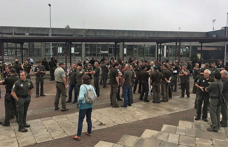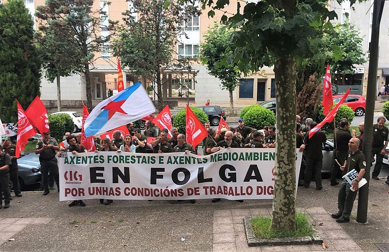 O comité de folga dos axentes forestais e ambientais da Xunta (CIG e UGT) levantáronse hoxe da mesa de negociación ante a negativa da Dirección Xeral da Función Pública a incorporar as súas demandas ao acordo laboral que regule as súas condicións de traballo. Arredor de 200 persoas concentráronse no exterior do edificio durante a xuntanza, onde celebraron unha asemblea na que apostaron por continuar co paro indefinido iniciado o pasado día 1, a excepción do persoal do Servizo de Conservación da Natureza, que adiou a folga e que estudará en asemblea o xeito de materializala sen poñer en risco a súa seguridade.