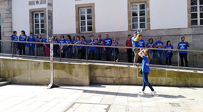 Ao tempo que se celebraba en Compostela esta concentración, persoal de Xustiza se concentraba diante da sede do Partido Popular na Rúa de Príncipe en Vigo.