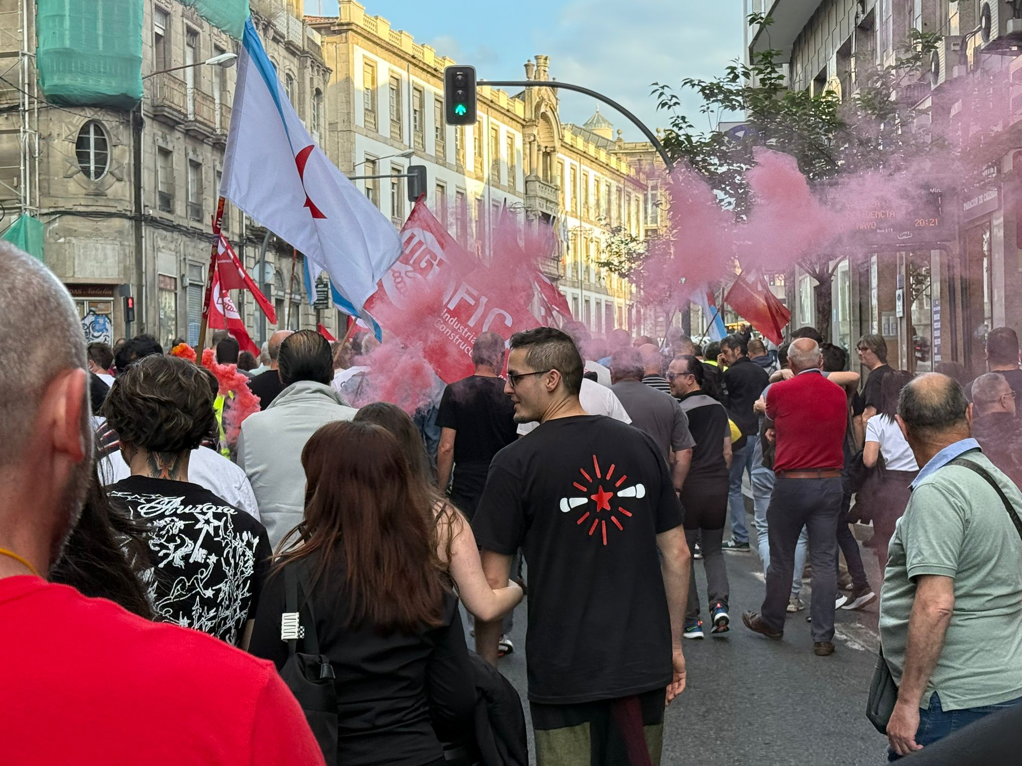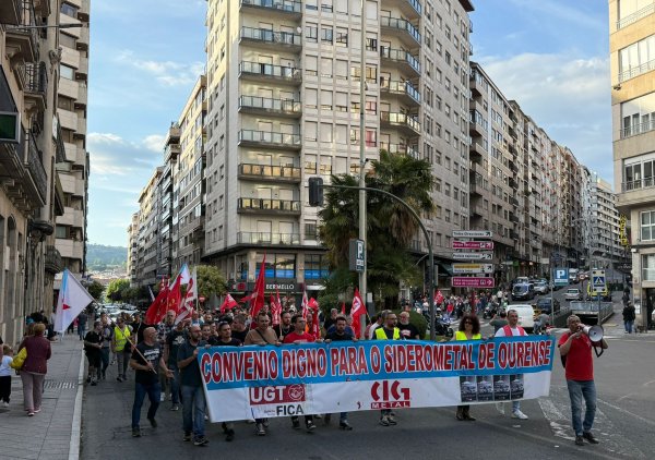 A mobilización- que se desenvolveu entre a Casa Sindical e a sede da CEO- foi convocada pola CIG e a UGT en resposta ao bloqueo das negociacións por parte da patronal, cuxa última proposta contempla un convenio a tres anos cunha suba de soldos do 3,5% para 2025 e do 2% para 2026 e 2027, sen redución de xornada e cunha cláusula de revisión salarial que como moito sería do 15% no conxunto dos tres anos.