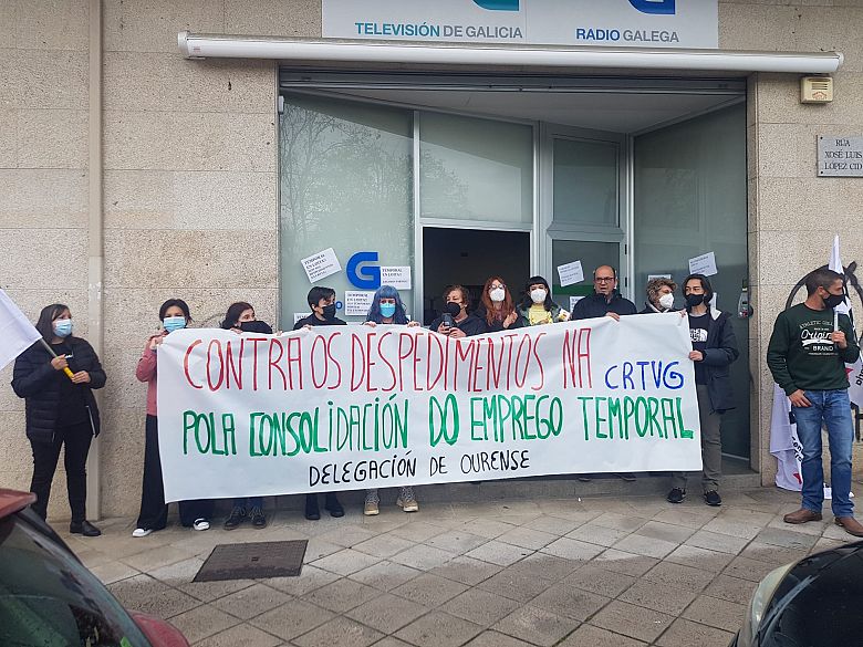 O persoal da CRTVG ten en marcha un calendario de mobilizacións para reclamar a redución da temporalidade na radio e a televisión pública galega, consolidando todo o emprego desa natureza que permite a lei. Este martes houbo concentracións no edificio de San Marcos (Santiago) e nas delegacións territoriais, para os mércores 20 e 27 de abril está convocada folga parcial de media xornada, e haberá folga de 48 horas os días 1 e 2 de maio.