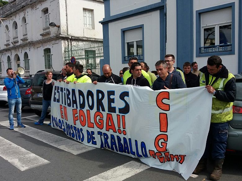 O persoal da estiba secunda a 1ª xornada de folga en defensa do emprego