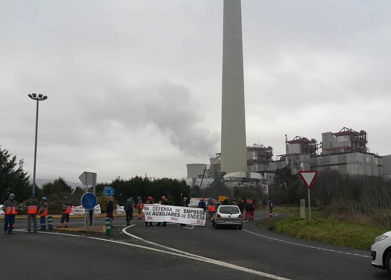 Traballadores e traballadoras das auxiliares da central térmica das Pontes retomaron este mércores as mobilizacións semanais na rotonda de Vilavella para esixirlle a Endesa que cumpra coas garantías de emprego e demandar unha transición enerxética xusta, que pasa porque a comarca estea incluída nos plans e axudas destinados aos territorios afectados polos procesos de descarbonización.
