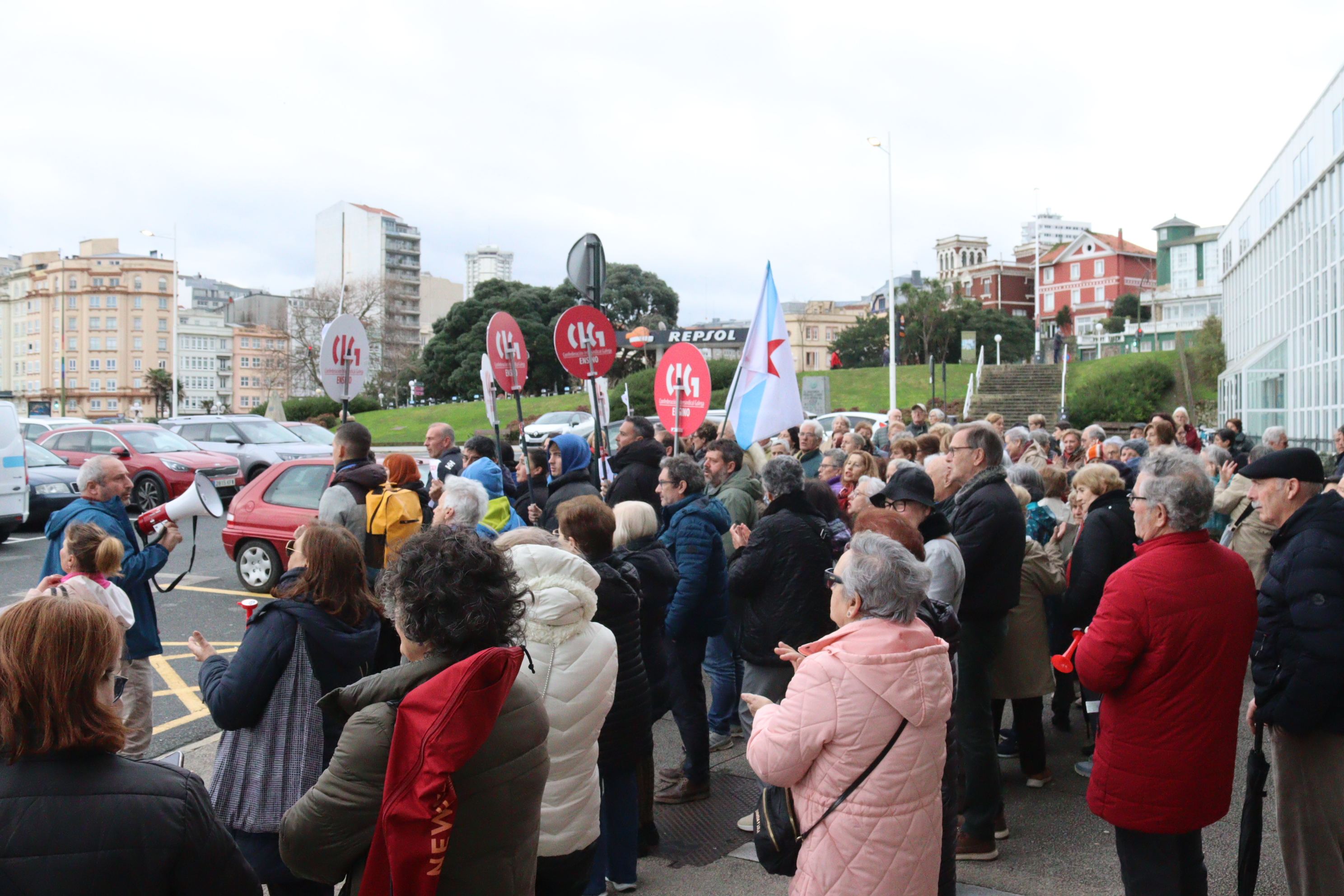 A protesta volveu contar coa participación de numerosas persoas usuarias, que un día tras outro arroupan solidariamente ao persoal en loita. Un apoio que as traballadoras e traballadores agradecen enormemente.